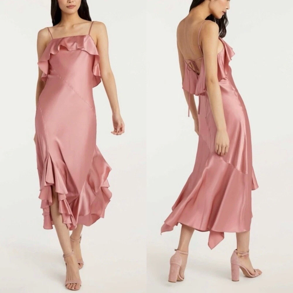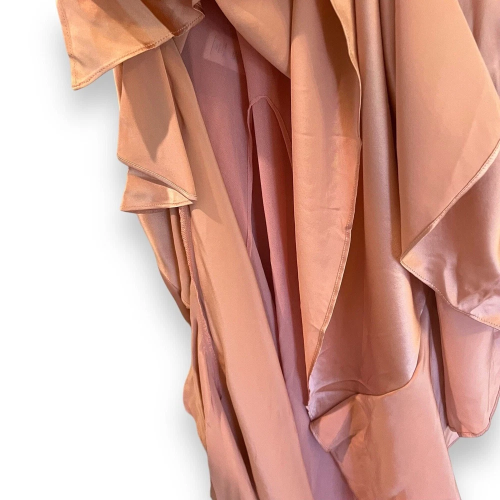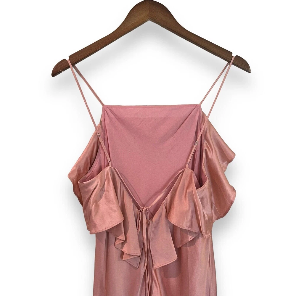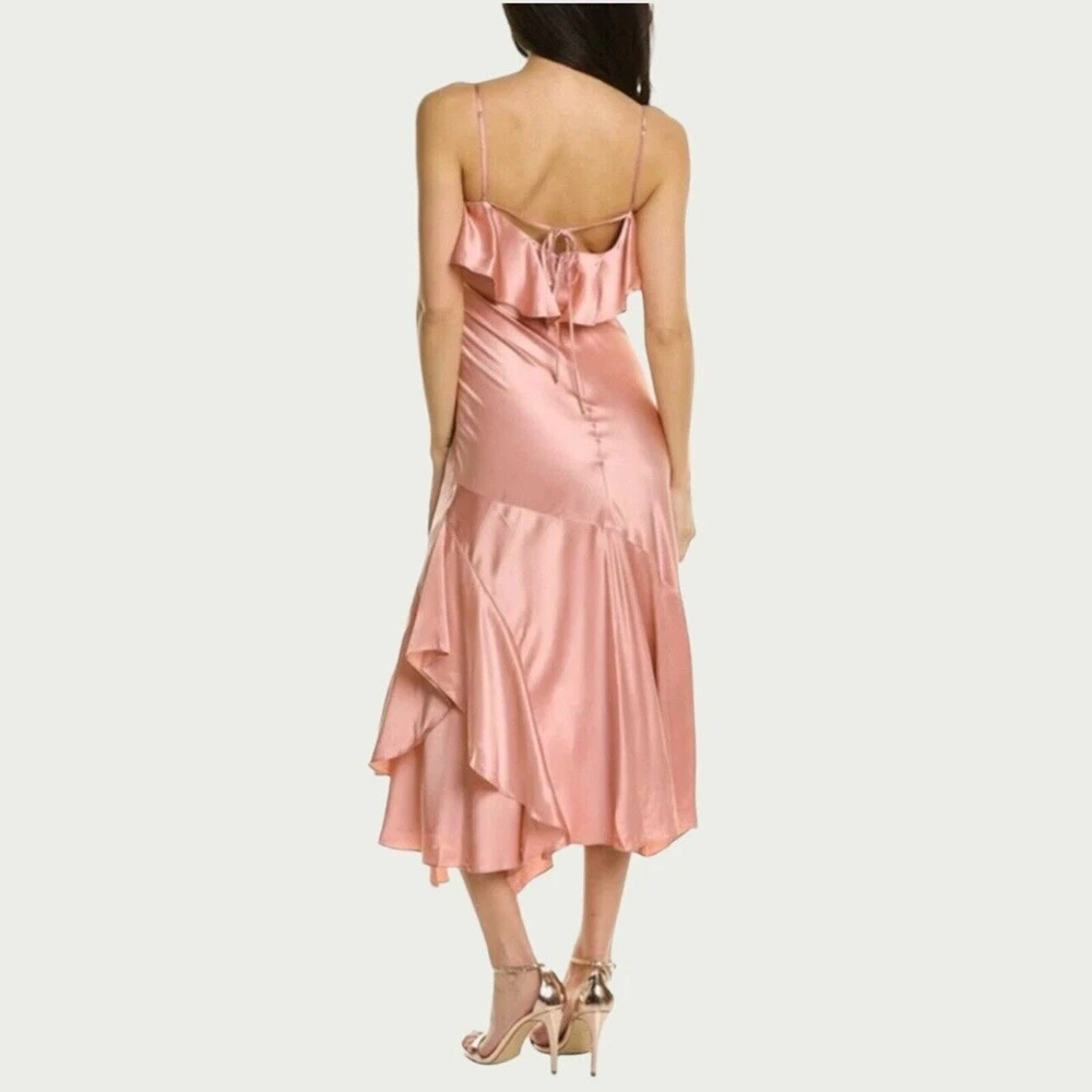 Cinq à Sept Blush Pink Elly Ruffle 100% Silk Maxi Slip Dress Size 12. New with tags but there are a couple small spots in the folds of ruffle on the front that should come out once dry cleaned. I only noticed them while taking photos. Please see last photo. Original retail price $595. * Lined * Ruffled asymmetrical hemline * Back zip closure * 100% silk * Dry clean only Chest: 18” flat across underarms Waist: 15” flat across Length: 56” shoulder to longest part of hem Ships from a smoke free home.
