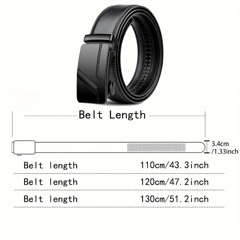 Cinturón Traje Jeans Hebilla Automática Hombres Negros Lujo PU Hombres Adultos Descripción: Material: poliuretano. Tamaño: Longitud del cinturón: 110 cm/43,3 pulgadas 120 cm/47,2 pulgadas 130 cm/51,2 pulgadas Ancho del cinturón: 3,4 cm/1,33 pulgadas