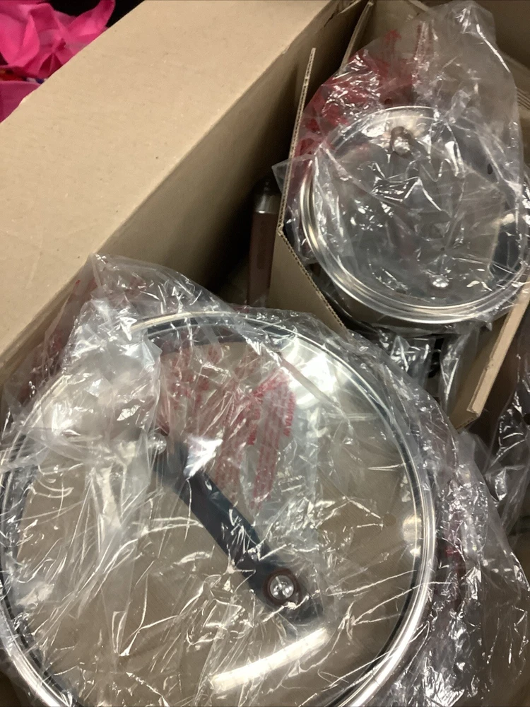 Brought to you by GlamCampLLC.com Circulon Premier Professional 13 Piece Non-Stick Cookware Set Hard Anodized New - Open Box - Still wrapped - See Images & Read Description! Current Retail $249.99 Cook like the pros with durable pots and pans designed for convenience and high performance with the Circulon Premier Professional 13-piece hard-anodized cookware set. Constructed from heavy-duty hard-anodized aluminum that’s twice as hard as stainless steel, this versatile collection of pots and pans features the unique TOTAL® Nonstick System of high-low circles built into the pan surface for exceptional, toxin-free nonstick performance that lasts 10x longer than ordinary nonstick coatings. The cookware set is oven safe to 400°F and is dishwasher safe for fast easy clean-up. The durable stainless steel base is suitable for all stovetops, including induction, and double-riveted handles with silicone grips provide everyday comfort and control. Includes: 1 qt. covered straining saucepan 2 qt. covered straining saucepan 3 qt. covered straining saucepan 8 qt. covered stockpot 5 qt. covered sauté with helper handle 8.5" fry pan 10" fry pan 12" fry pan Features: Toxin-free nonstick interior and exterior Hard-anodized aluminum construction Stainless steel base suitable for all stovetops, including induction Dishwasher safe Saucepans feature straining lids and pouring spouts Double-riveted stainless steel handles with silicone grips Shatter-resistant glass lids Fed Ex Zones: Zone 1: 0-50 miles. Zone 2: 51-150 miles. Zone 3: 151-300 miles. Zone 4: 301-600 miles. Zone 5: 601-1,000 miles. Zone 6: 1,001-1,400 miles. Zone 7: 1,401-1,800 miles. Zone 8: 1,801+ miles. Please feel free to reach out if you have any questions! IF YOU NEED A SPECIFIC CARRIER (UPS/USPS/ETC) - PLEASE LET US KNOW AT TIME OF PURCHASE!