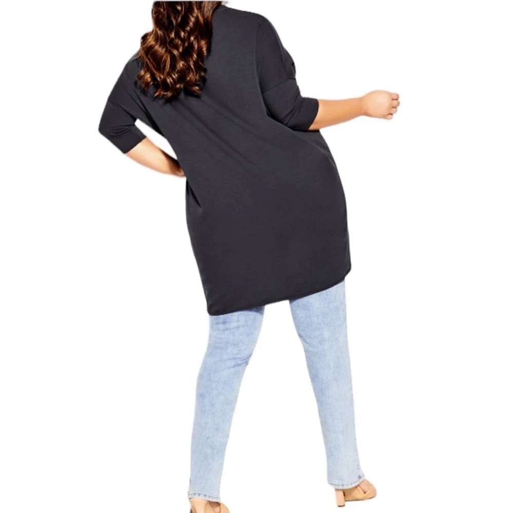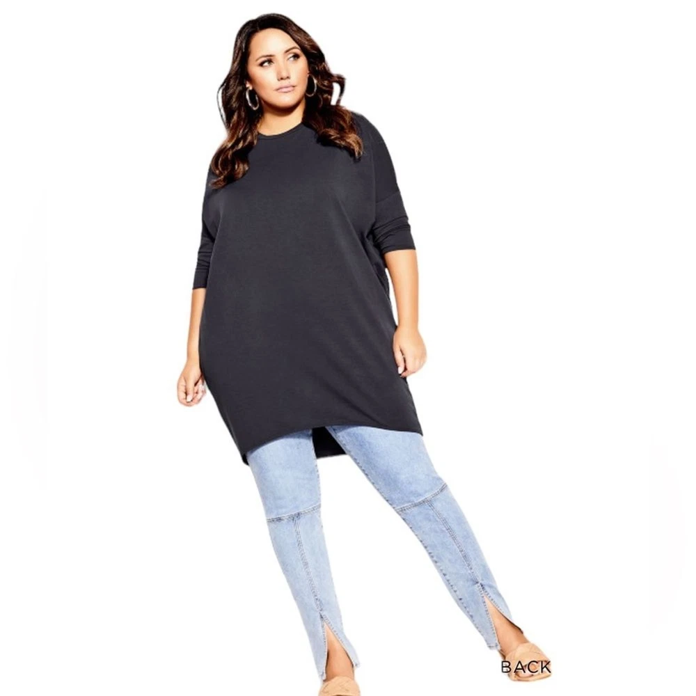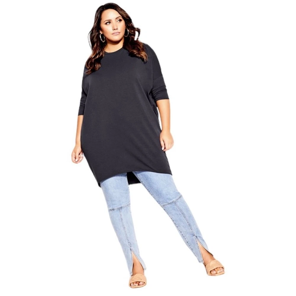 City Chic Oversize Longline Top In Graphite Size 24