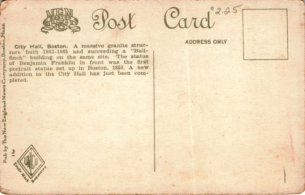 MAKE AN OFFER. THE MORE YOU BUY THE BETTER DEAL I WILL ACCEPT The postcard features an image of City Hall and Annex in Boston, Massachusetts. The City Hall is a massive granite structure that was built between 1862-1865, replacing a previous Bullfinch building on the same site.
