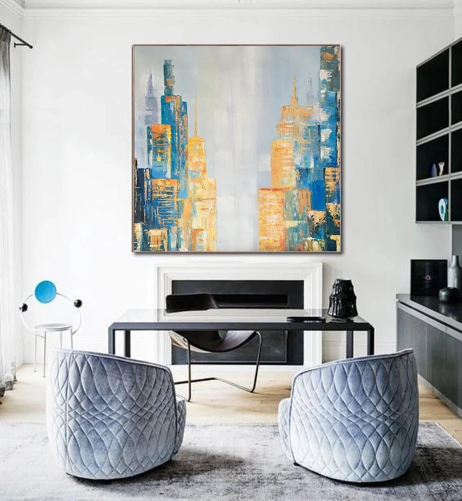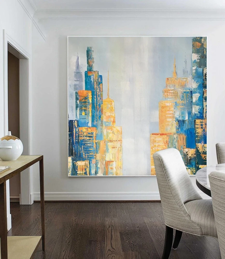 City Wall Art Decor City Skyline Abstract Oil Painting City New York Cityscape