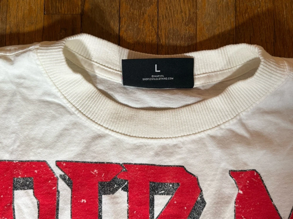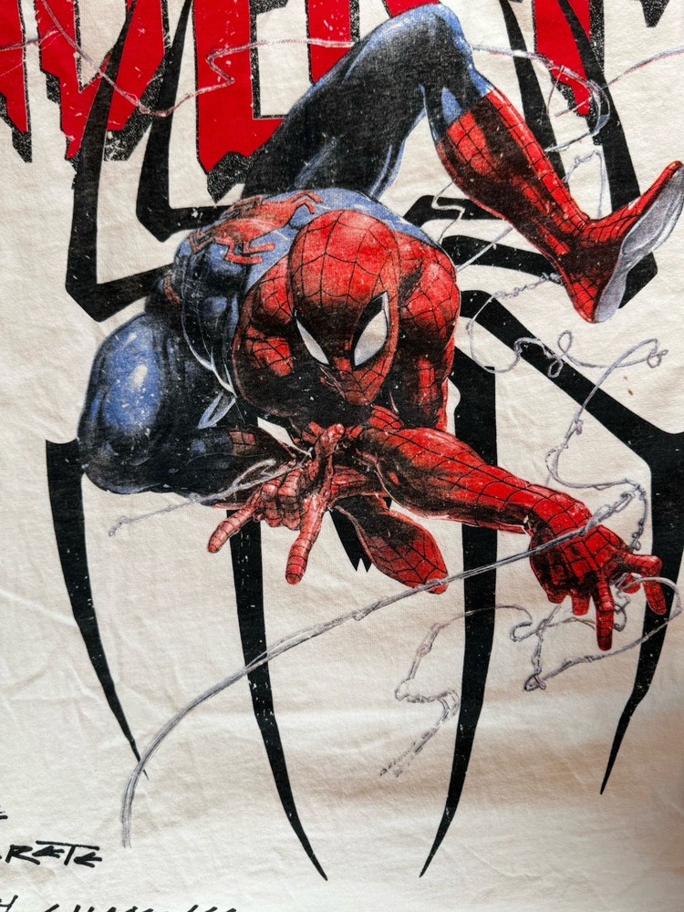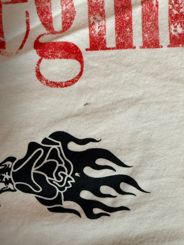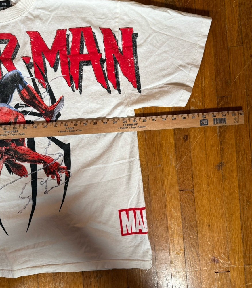 This shirt is preowned. It was worn once, washed and put into storage. There is a very small spot on the back of the shirt. See pictures