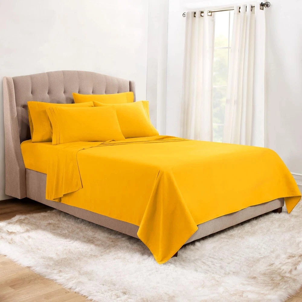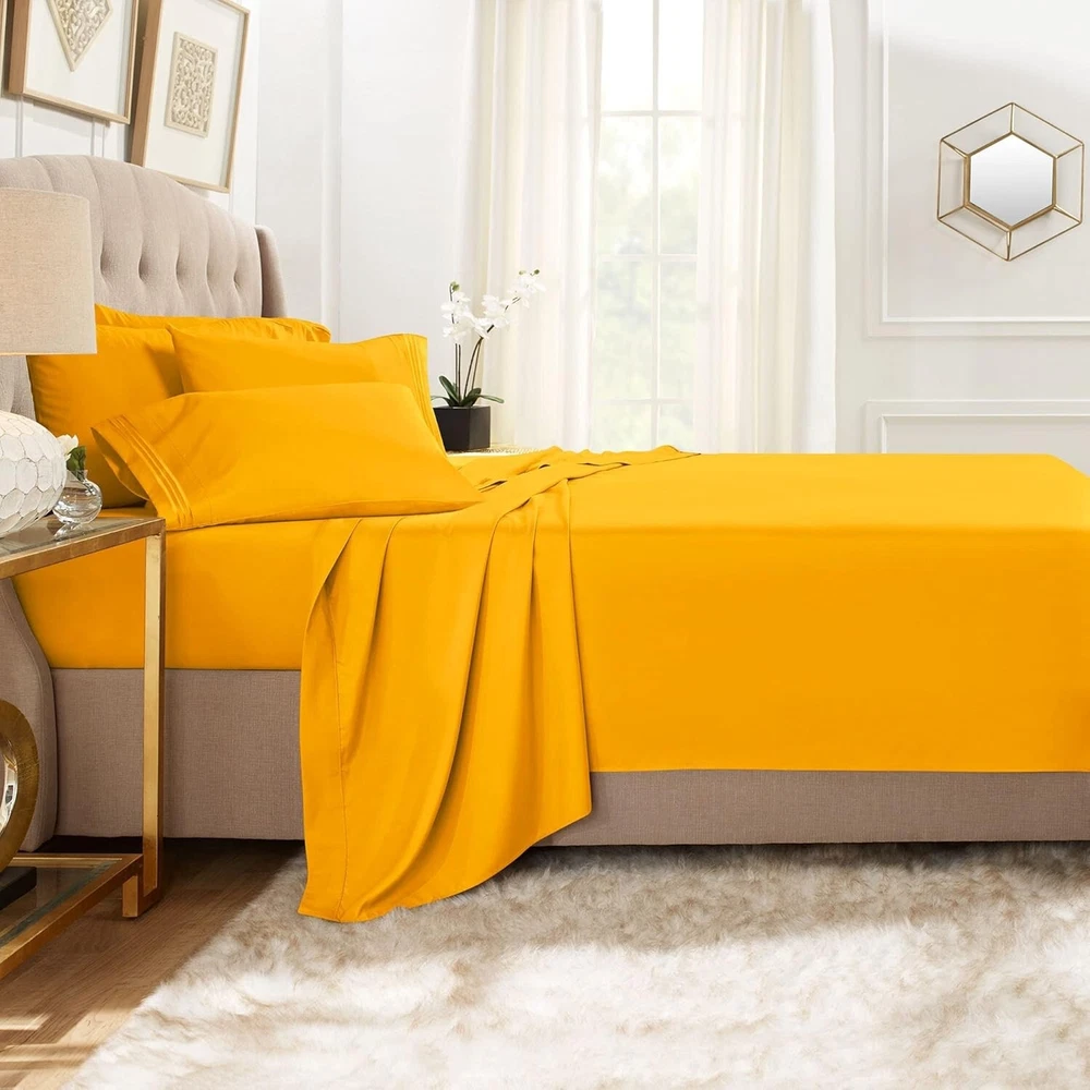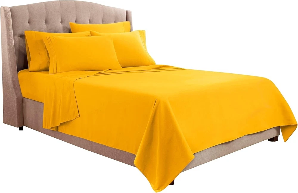 Clara Clark Bed Sheets, Premier 1800 Series Bed Sheet Set with Extra Set Pillowcases, Deep Pocket Fitted Sheet, Luxury Soft Bedding Sheets & Pillowcases, California King, Yellow Microfiber California King Size Luxury 6 Piece - Set Includes; 1 flat sheet 108" x 102", 1 fitted sheet 84" x 72", 4 pillowcases 20" x 40". Deep pocket fitted sheet for deep mattress of 14" to 16" inches, with an elastic all around the sheet. This bed sheet set is made of the best quality microfiber materials, double brushed on both sides to increase ultimate luxury and softness. It is super soft, luxury to the touch, cool and breathable you should be able to have the best night experience ever. Easy Care - Fade, stain, shrink and wrinkle resistant. Machine washable in cold, dries quickly on tumble dry low temperature. Tip: Remove promptly from dryer, place right away on bed, it will look beautiful and neat, like ironed sheets. Ultra Soft Quality - Made of pure 100% Microfiber fabric, Clara Clark Microfiber is carefully double brushed on both sides, specially crafted for your highest level of comfort. Specially dyed that the color should not fade and always stay beautiful and colorful.