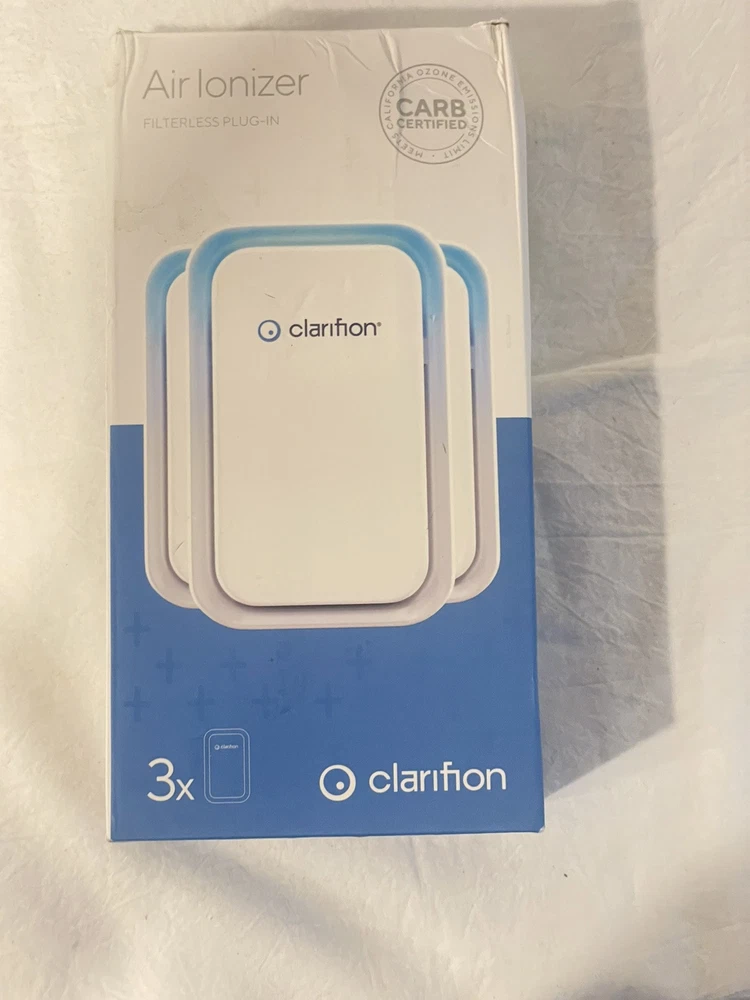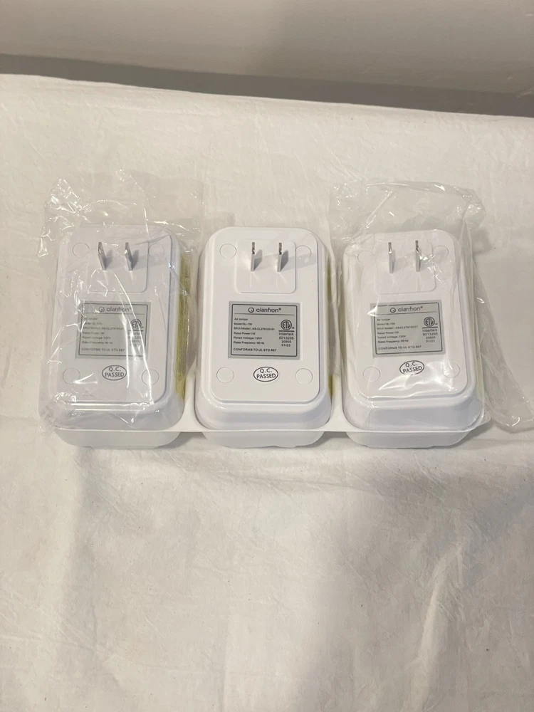 Clarifion offers a 3-pack of Air Ionizers for Home with Negative Ion Filtration System. This plug-in unit is designed for rooms up to 100 sq ft, with a CADR of 101-150. It features filtration technologies like Activated Carbon and Electrostatic, capturing various contaminants like allergens, odors, and bacteria. The air purifier operates quietly at 25 dB, has a wall-mount option, and includes a night light. Perfect for improving indoor air quality in different rooms.
