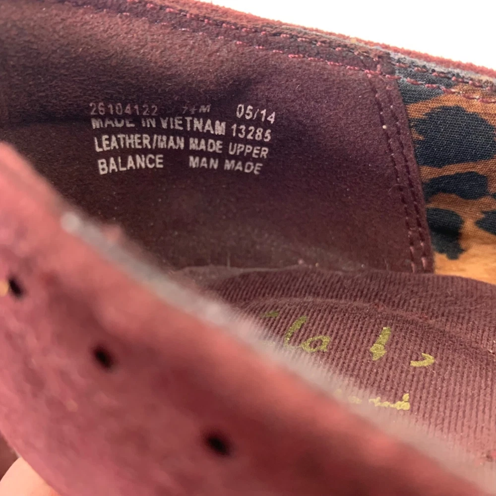 Clarks Sapphire Vase Burgundy Suede Mary Jane Leather Pumps Size 7.5 Excellent preowned condition! Buckle closure Patent leather toes 2.75” stacked block heel 1P35 1 lb 1 oz Box 8 Tags: witch, Whimsigoth, vamp, sexy, goth