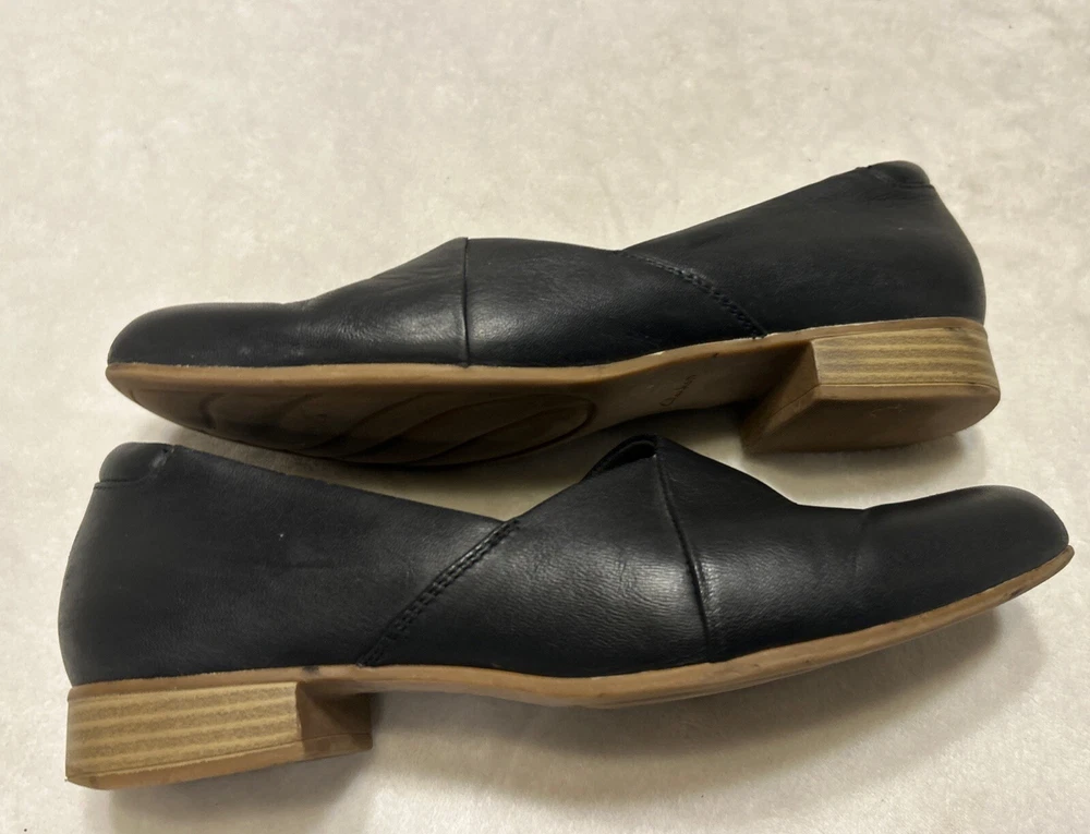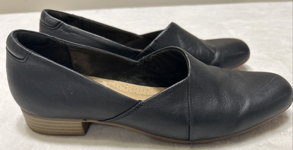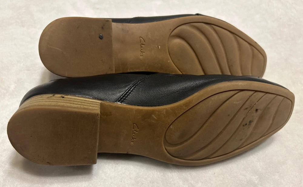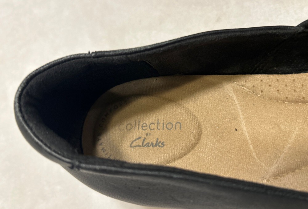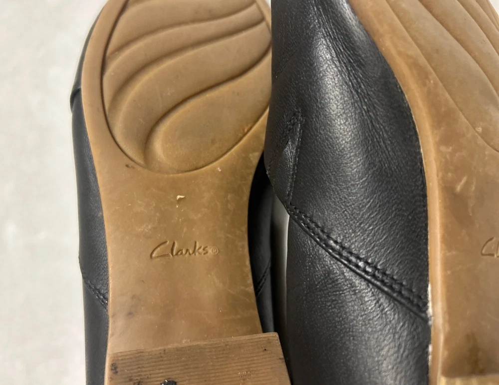 Clarks Women’s Shoes Size 9.5 M Black Slip On Leather Wedge Heel Comfort Foam