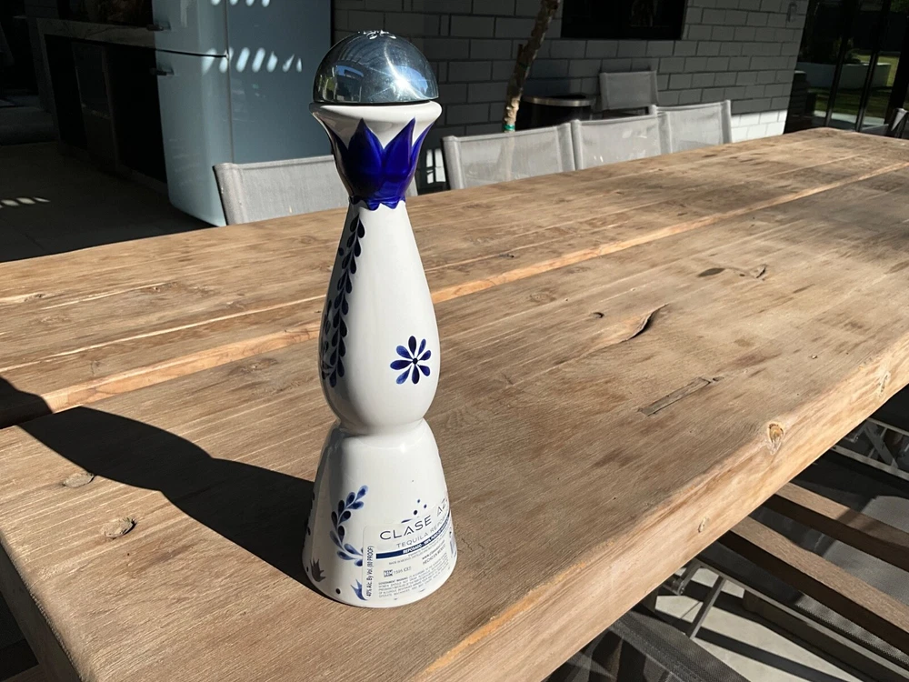 This Clase Azul Reposado Tequila Bottle is a must-have for any liquor collector. With a 750ml capacity, this bottle is perfect for storing your favorite tequila or other liquors. The bottle features a hand-painted design with the Clase Azul brand name and an agave plant logo. This modern (1900-Now) bottle is manufactured in Mexico and is an authentic collectible item. The white color of the bottle adds a touch of elegance to your bar or collection. Whether you are a fan of Clase Azul or just looking for a unique liquor bottle, this is a great addition to your collection.