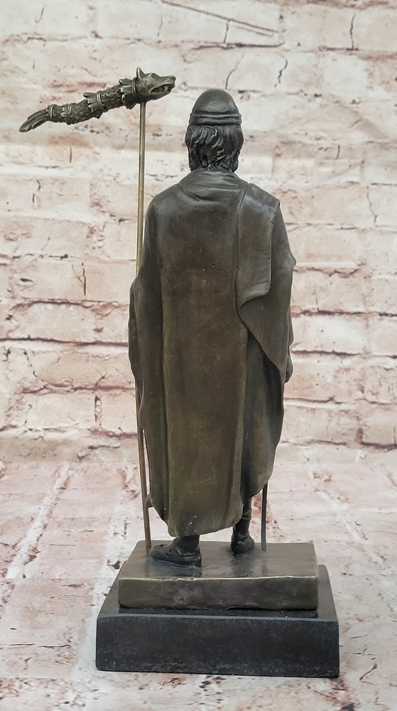 Most Classic and well known versions of Greek mythology, Cronus or Kronos Gift Most Classic and well known versions of Greek mythology, Cronus or Kronos Gift Condition : This sculpture is in perfect condition Bronze Dimensions with Marble Base: Height 11.5" X Width 6 1/2" Marble Dimensions:4 1/2" X 4" Height without base10" Weight:7 LBS Inventory:17YDZ0023871 Greek God Saturn Bronze Sculpture: A Mythological Masterpiece This extraordinary bronze sculpture captures the essence of the Greek God Saturn, also known as Cronus, in breathtaking detail. Saturn is depicted holding his symbolic scythe, representing his dominion over time and harvest. The artist has masterfully crafted every aspect of the figure, from the strong, defined muscles to the intricate folds of his attire. This mythological figure stands tall, exuding power, wisdom, and a timeless presence that captivates any viewer. Lost-Wax Casting: A Timeless Technique This sculpture is a testament to the enduring art of lost-wax casting, a method that has been used for centuries to create intricate bronze works. The attention to detail and craftsmanship in this piece is unparalleled, with the rich brown patina finish enhancing the natural beauty of the bronze. This ancient technique allows for an extraordinary level of detail, preserving the artist’s vision in a way that ensures the sculpture’s longevity and high quality. The two-tone patina highlights the artistry, giving the figure both depth and warmth. An Elegant Addition to Any Collection Mounted on a black marble base, this bronze sculpture is not only a tribute to Greek mythology but also an elegant addition to any art collection. The smooth marble contrasts beautifully with the rough texture of the bronze, giving the piece a sophisticated finish. Signed by artist B.C. Zhang, this sculpture is a work of fine art that bridges classical mythology with modern craftsmanship, making it a must-have for collectors and admirers of fine bronze works. Greek God Saturn Holding Scythe Bronze Sculpture Hot Cast Figurine Figure Video will open in a new window Using the eBay App? Paste link into a browser window: [isdntekvideo] Shipping Terms : Most of our items are shipped via USPS (United States Postal Service) mail or UPS. Most orders are shipped within 24-48 hours of purchase. Please be aware that not all items are available for USPS shipping due to size and weight. We do ship to Hawaii, Alaska, Canada, Puerto Rico, APO/AE, and U.S. Virgin Islands, however, an additional charge may be required. Please contact us before making any purchases in these areas. For Non-USA customers, you may be responsible for all duty, tax, brokerage fees that may be due upon delivery (shipping costs cover freight charges only). We also ship internationally. Please refer to the "Shipping and Handling" chart for the rates for each area. Payment : We accept just about any form of payment. PayPal, Master Card, Visa or American Express credit cards. Money orders, cashiers checks, and even personal or business checks. For governmental institutions, we will also accept a purchase order. Please understand that for personal or business checks we have to wait for the check to clear (usually 7 days) before shipping. Condition : New Detailed Hand Crafted Hot Cast Bronze Satisfaction Guaranteed. This is Stock Photo, Slight Color Variation!! Listing and template services provided by inkFrog