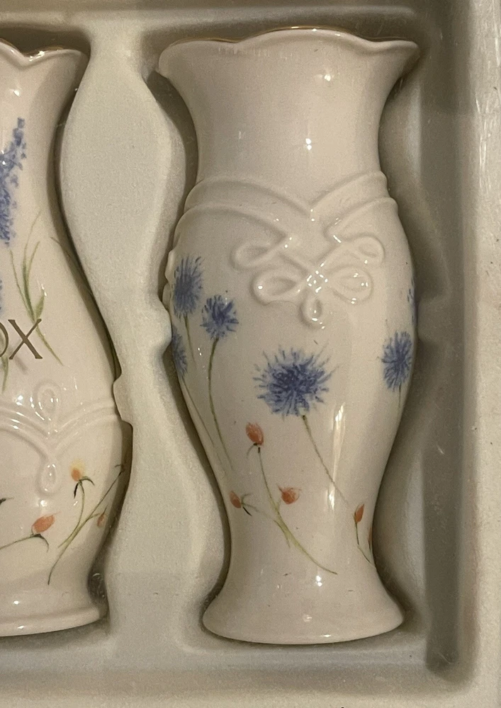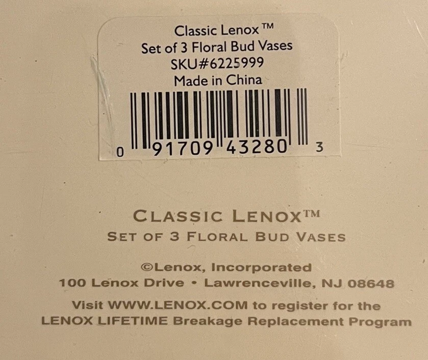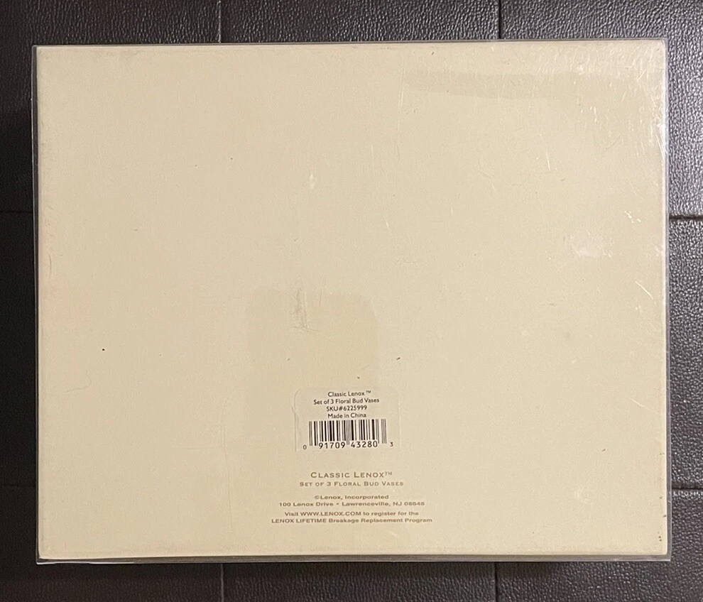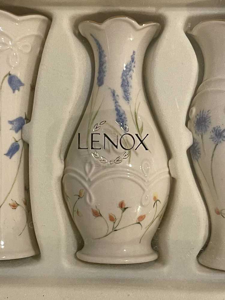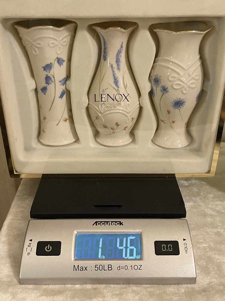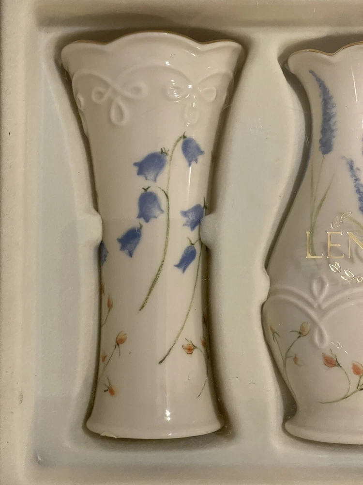 Description: (T-30) Lenox Set Of 3 Porcelain Floral Bud Vases Gold Trim Bluebells 5” Classic Lenox Set of 3 Floral Bud Vases SKU #6225999 Made in China Size: 5” in. Tall Weight: 1.46 Lbs. In excellent like new in the box condition I don’t believe they were ever used. ~PLEASE SEE PICS FOR BEST INFORMATION~ I try my best to research everything I have the best that I can. If you see something I have gotten wrong, please let me know & I will happily & gladly investigate it & get it fixed. Thank you 😊 ~ PLEASE SEE ALL PHOTOS & ASK ANY QUESTIONS YOU HAVE BEFORE BIDDING OR PURCHASING. ~ ~ ALL SALES ARE FINAL & SOLD "AS IS" EXACTLY AS SEEN IN THE PHOTOS ABOVE. ~ ~ PLEASE NOTE THAT THESE ARE PREVIOUSLY OWNED ITEMS, THEY MAY HAVE SIGNS OF WEAR, POSSIBLY BELONGED TO ANIMAL LOVERS, SMOKERS, BEEN IN STORAGE FOR SEVERAL YEARS OR EVEN DECADES, ABANDONED, 👽🛸 , ETC. ~ ~Boxed Weighed & Ready to Ship 🚚📦 ~ Ships USPS Ground same day as purchased or the following business day. Monday - Friday