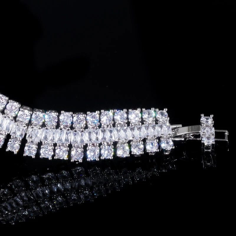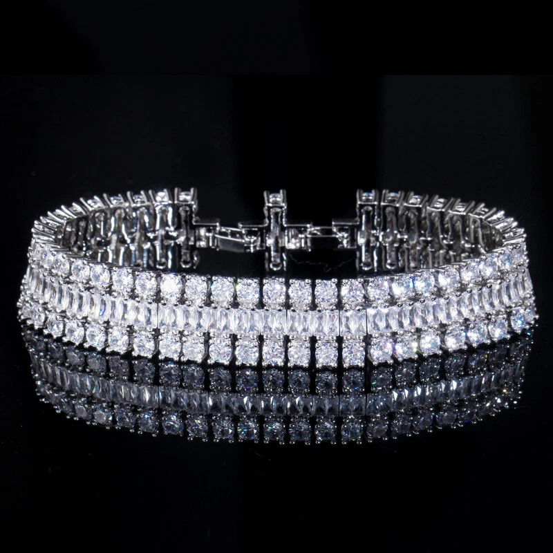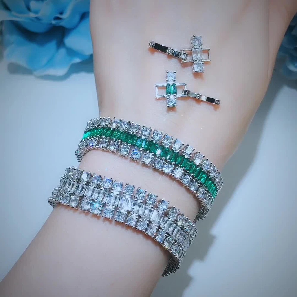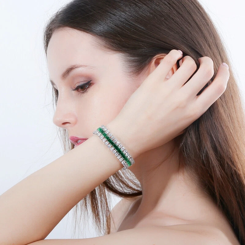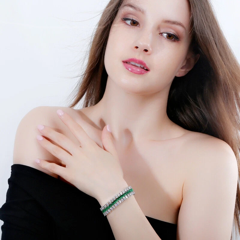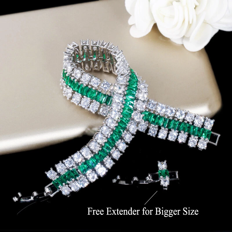 Classic Silver Plated Chic CZ Large Wide Tennis Bracelet for Women Green Jewelry