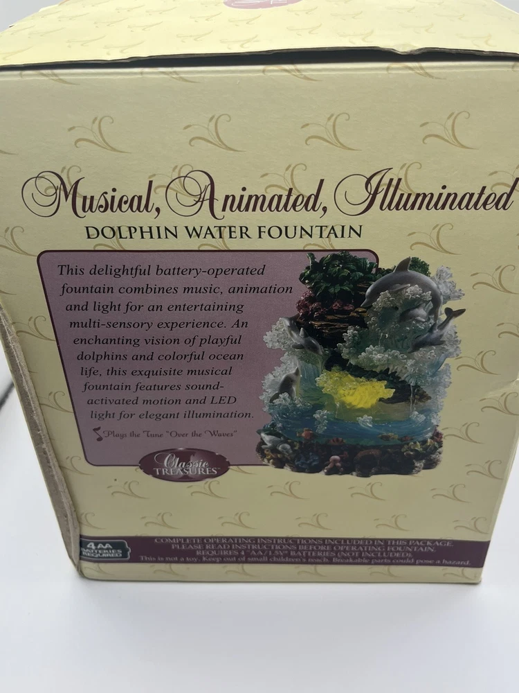 Add a touch of oceanic charm to your home décor with this Classic Treasures water fountain. Crafted from resin, this medium-sized fountain features a delightful dolphin and wave design, perfect for any room in your home. The fountain is battery-operated and requires AA batteries, making it easy to use and maintain. With its multicolor design and classic style, this fountain is a must-have for any home. It's perfect for indoor use and can be easily placed on a tabletop or any other surface. Whether you're looking to add a touch of elegance to your living room or want to create a relaxing atmosphere in your bedroom, this fountain is sure to impress.