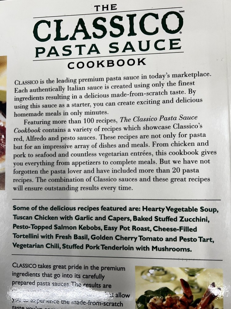 Indulge in the authentic taste of Italian cuisine with The Classico Pasta Sauce Cookbook. Written by Antigone Dallas and published by Rose Incorporated, Robert in 2002, this first edition cookbook offers 192 pages of delicious recipes that make use of authentic Italian pasta sauces. Whether you're young or old, this cookbook is perfect for anyone looking to impress their guests with mouth-watering home-cooked meals. The Classico Pasta Sauce Cookbook is a vintage trade paperback that measures 8 inches in length, 10.5 inches in height, and 0.5 inches in width. It is highly recommended for those who are interested in cooking, cookbooks, food, and drinks, as well as those who love Italian cuisine. This illustrated cookbook is perfect for cooking enthusiasts who want to try new recipes, and it contains a wide variety of dishes categorized into different topics such as National Cooking, Cooking by Ingredient, Methods/Quick & Easy, and Regional & Ethnic/Italian.