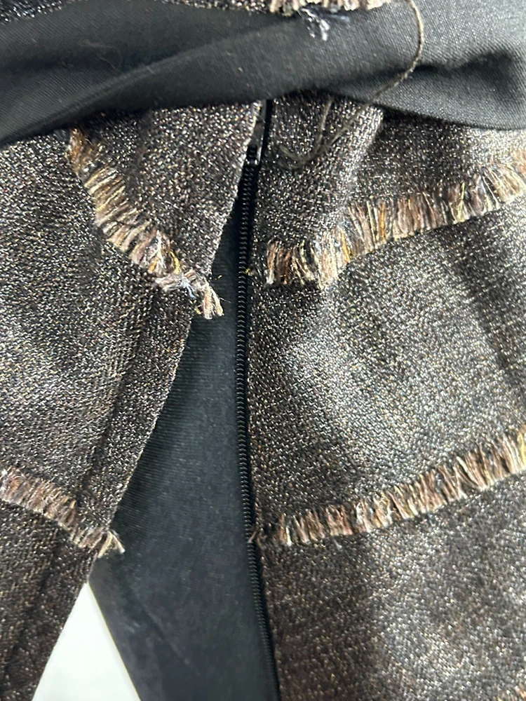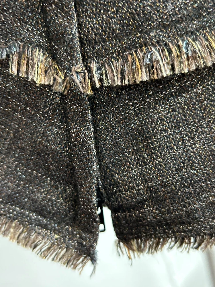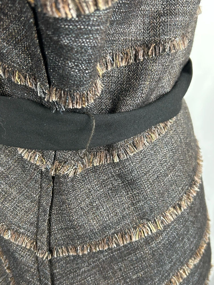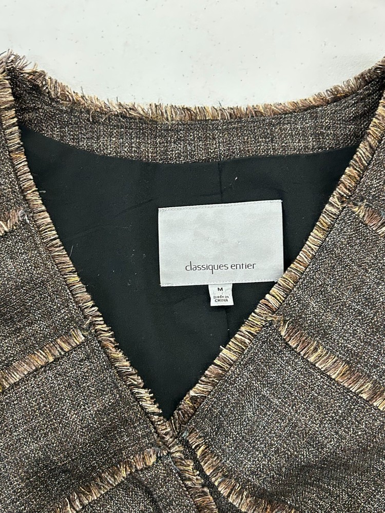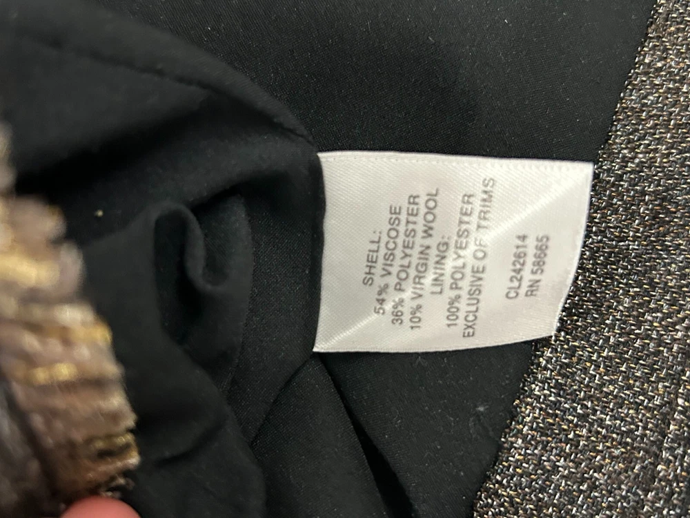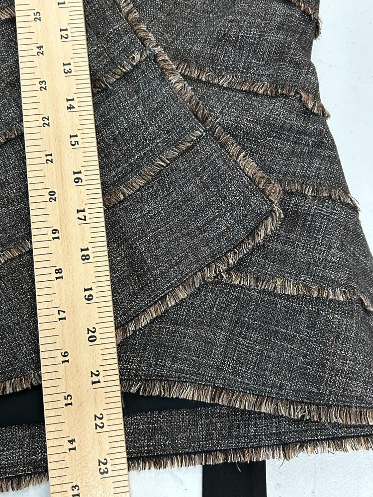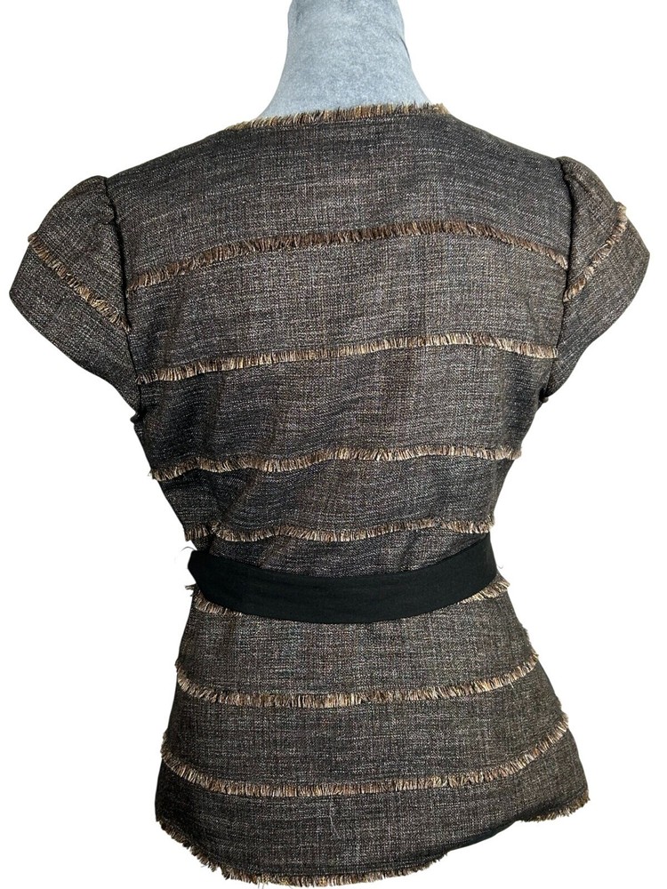 The Classiques Entier Women's Surplice Bust Tiered Blouse in black is a stylish and elegant top perfect for casual occasions. This blouse features a V-neckline, zip closure, and short cap sleeves. Made from a blend of polyester, viscose, and wool, it offers a comfortable fit with an extra-slim cut. The tiered accents and belted design add a modern touch to this timeless wardrobe staple, making it a versatile piece suitable for all seasons. Made in the 2020s, this blouse is a must-have for any fashion-forward woman looking for a chic and sophisticated look.