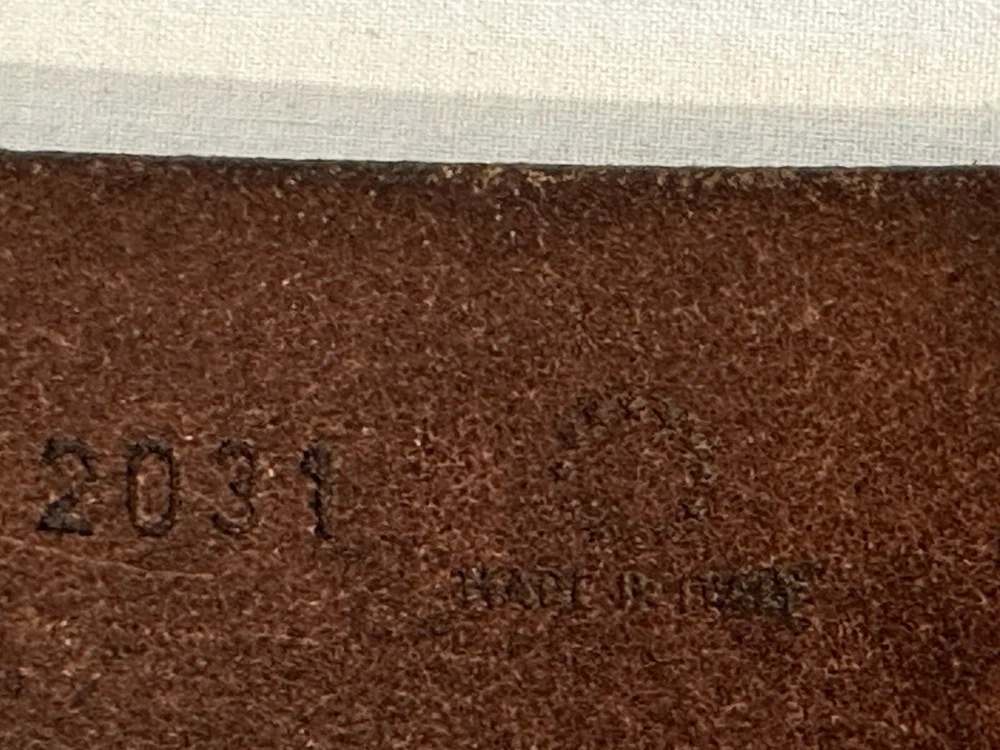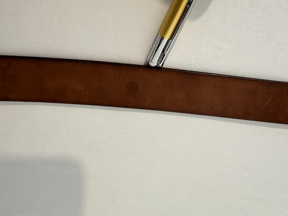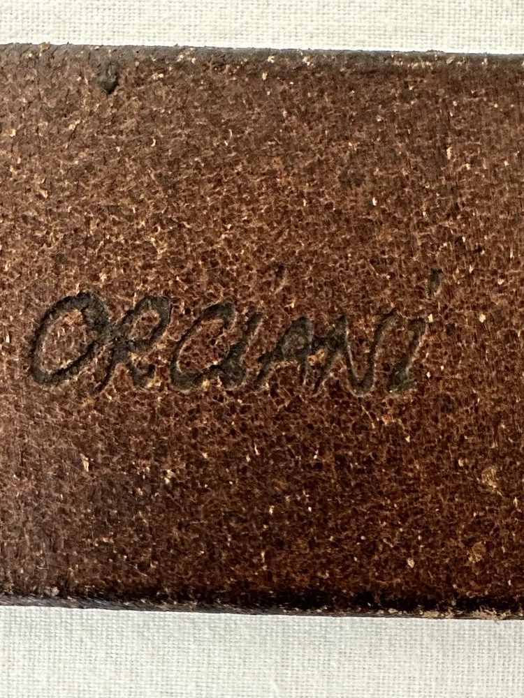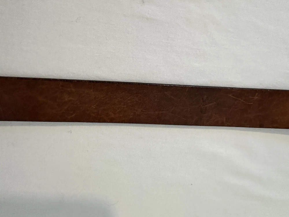 Claudio Orciani Brown Leather Belt Leather Wooden Buckle Italy 2031 43” Good Normal Wear Light Scuffs One Water Mark Lines On Leather From Buckle SEE PICTURES FOR CONDITION Measures 43”