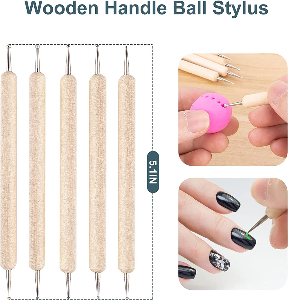 Useful Tools: Polymer clay tools kits are the art of shaping, casting, molding, modeling, painting, dotting, sculpting or carving a mold-able material, for air dry clay, polymer clay, modeling clay, pottery clay, molding clay and ceramics, which can also be used with polymer clay cutters. And our 25 different clay sculpting tools will provide various carving shape to make your designs more flexible and are suitable for beginners and experts Excellent Quality: Clay sculpting tools are made of excellent quality metal head, wooden handle, and plastic. They are sturdy and timeproof. They are sensible for pottery craft, nail, rock, blending, drawing, smoothing, and cleaning Nice Souvenir: Our clay tools sculpting set is a great idea to surround yourself with reference of real life and other inspiring art. And air-dry clay tools are sensible holiday and birthday goods for your family members, kids, adults, friends, students, and any aspiring artist in your life at birthday, holiday, and so on Package Includes: You will receive a complete kit of clay tool, including 5 wooden carving/shaping tools, 5 wooden handle ball stylus, 5 silicone clay sculpting tools, 4 rubber handle ball stylus, 4 plastic stylus, 1 pottery sponge in a black storage bag Important: If it is a present for a minor, please stay with them while they use it to avoid unnecessary trouble Product Description Package includes 5 Wooden Clay Tools 5 Wooden Handle Ball Stylus 5 Rubber Pens 4 Rubber Handle Ball Stylus 4 Plastic Stylus 1 Pottery Sponge 1 Black Storage Bag Excellent Quality and Nice Souvenir Our polymer clay tools kits are the art of shaping, casting, molding, modeling, painting, dotting, sculpting, or carving a mold-able material, for air dry clay, polymer clay, modeling clay, pottery clay, molding clay And our 25 different clay sculpting tools will provide various carving shape to make your designs more flexible and are suitable for beginners and experts Our clay tools sculpting set is a great idea to surround yourself with reference of real life and other inspiring art. And air-dry clay tools are nice holiday and birthday goods for your family members, kids, adults, friends, students, and any aspiring artist in your life at birthday, holiday, and so on CAUTION: The metal and wooden heads are very sharp, so please be careful to keep them away from children, or these tools should be used under the supervision of adult
