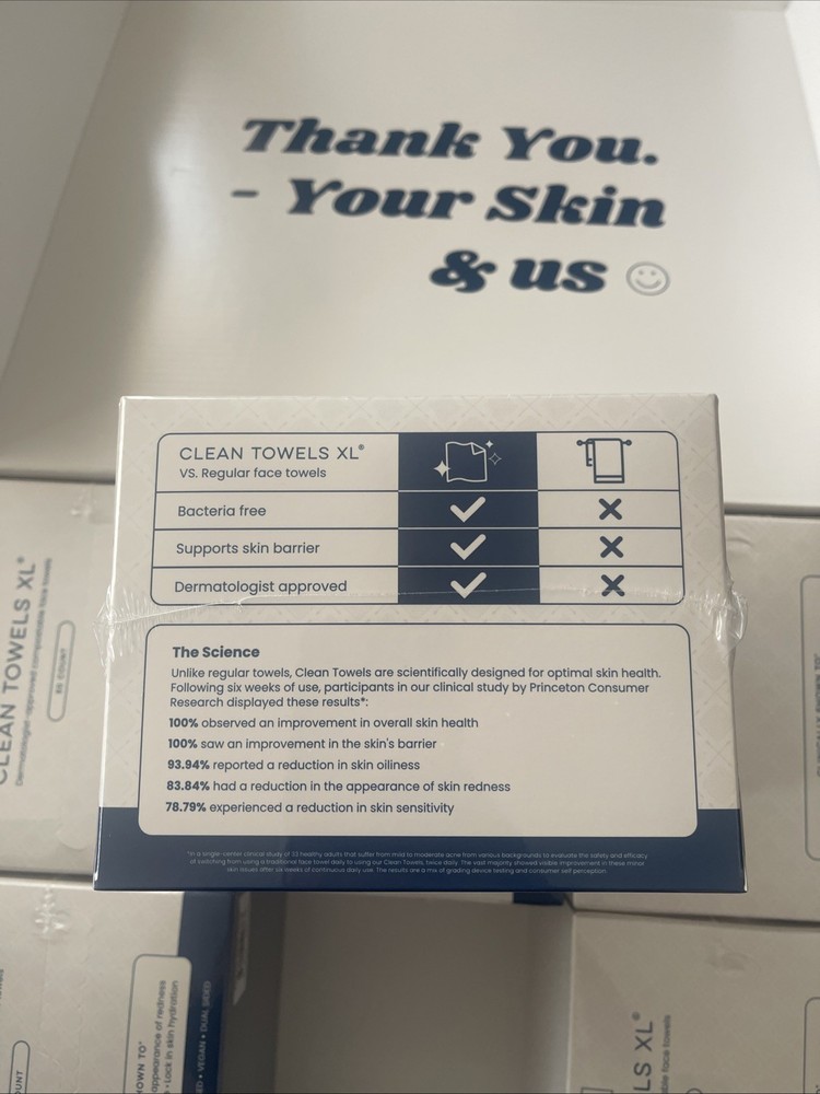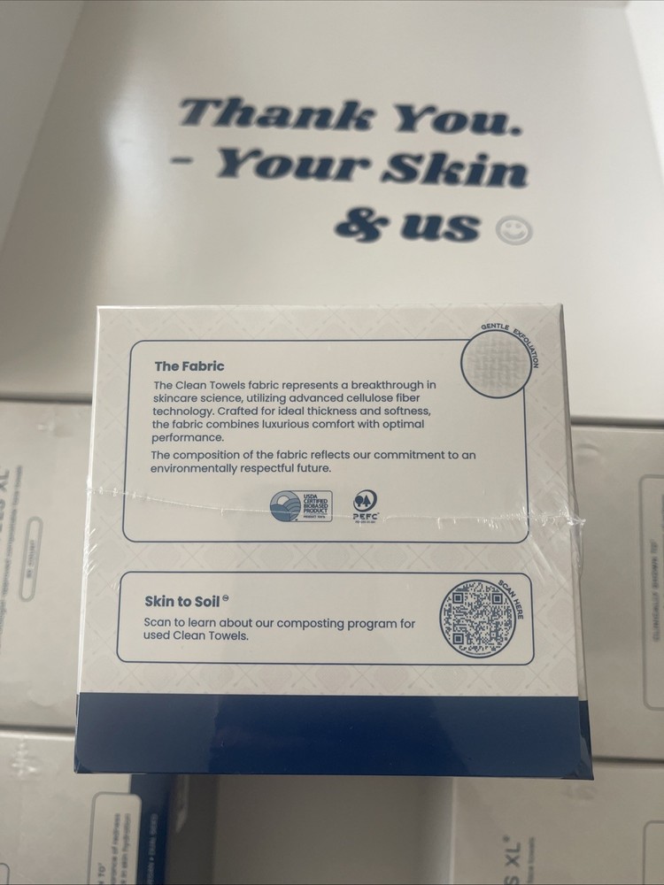 The Clean Skin Club Clean Towels XL™ are 100% USDA biobased disposable face towels, featuring a solid white color and a square shape. Made from a blend of paper and bamboo materials, these extra soft towels are designed for maximum absorbency and gentleness on the skin. With 50 towels included in each pack, this modern-themed product is perfect for adults looking for a convenient and eco-friendly alternative to traditional face cloths. Made in the United States by Clean Skin Club, these disposable towels are a must-have addition to any bathroom.