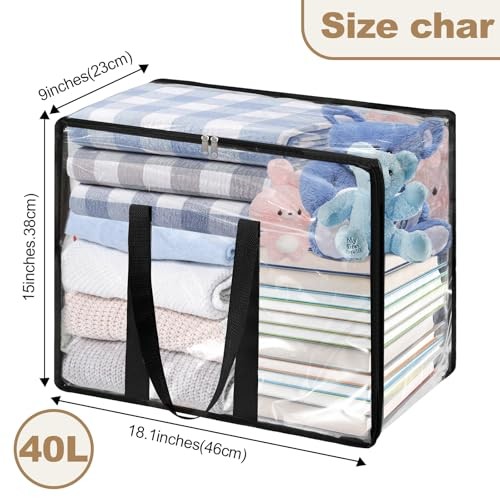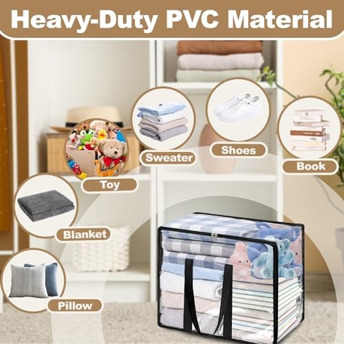 Return Policy Fast Delivery Trusted seller 1 Pack Clear Blanket Storage Bags, 40L Clothes Storage Bags with Zipper, Vinyl Moving Bag Closet Organizers and Storage Containers for Bedding, Comforter, Pillow Product Description Heavy Duty PVC Material: The clothing storage bag is made of sturdy and durable heavy duty PVC material which is very thick, cut and abrasion resistant, as well as water, stain and dust resistant. It protects clothes better than other ordinary plastic bags Product Size: Set includes 4 clear storage bags, each measuring 18.1'' (46 cm) x 9.1''(23 cm) x 15 '' (38 cm) with a 40 liter/8.8 gallon capacity.These plastic tote storage bags can store bulky items such as sheets, towel, blankets, quilts, seasonal clothing, sweater, pillows and even Christmas gifts Reunforced Handles & Zipper: The handle is reinforced with densely woven seams for greater strength and double the weight capacity. Stainless steel two-way zipper, very strong and smooth, no matter how full it is, the two-way zipper slides easily without getting stuck. The zipper closes tightly to keep dust and insects out. The zipper storage bag is definitely the first choice for storage, transportation and moving Organize Multiple Items: Not only can you store clothes, quilts, blankets, pillows and other bedding, but also books and holiday decorations. Can be placed in bedroom closet, under beds, rack shelf, dormitories, attics, basements and many other spaces Visible Design: The transparent design is easy to see at a glance what you are storing. You can easily find what you want without opening the organizer. Our underbed storage containers will help you keep your home tidy and save space Shipping Returns Payment Shipping Shipping is FREE to all addresses other than APO/PO boxes in the lower 48 states. All our stock ships from US-based warehouses. Shipped via USPS or UPS (depending on location and package weight) Unless stated otherwise, all orders will ship within 24-72 hours of your payment being processed. Check our feedback to see the great reviews of FAST shipping we offer. Returns Seller does not accept returns Payment We currently accept payment via eBay managed payments only. Once payment is cleared, we will dispatch your shipment within 1-3 business days. Please refer to the "Shipping" tab for more information regarding shipping speed to your destination.