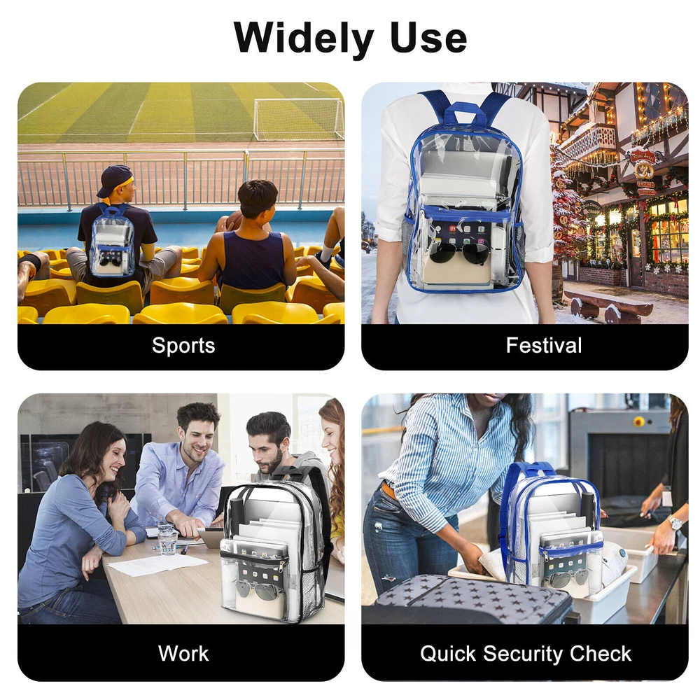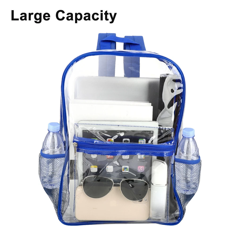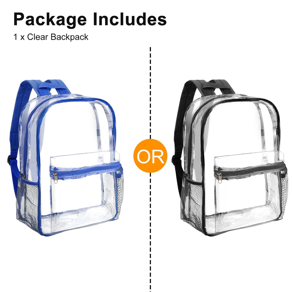 Welcome to Our Store! We Are Offering High Quality Products with Reasonable Wholesale Price. All Products Are Supply from Factory Directly. Excellent Service and Fast Shipping. Product Feature: Enhanced Durability:Made from high-quality, sturdy PVC materials, this backpack is designed to withstand daily wear and tear. Comfortable and Adjustable: The adjustable shoulder straps offer a customizable fit, ensuring maximum comfort for any body type. Security and Convenience: The transparent design not only looks stylish but also adds an extra layer of security. You can easily locate and access your belongings without the need to rummage through your bag, making it the ideal clear backpack for schools, security, sporting events and much more. Multiple Pockets: The backpack features several pockets, including a front zippered pocket for quick access to frequently used items, two side mesh pockets for water bottles or umbrellas, and Front Zipper Accessory Pocket. Product Specification: Type: Clear Backpack Size: Large Material: PVC Color: Clear Blue,Clear Black Features: Adjustable Straps, Bottle Pocket Closure: Durable zipper closure Payment Payment is needed to receive within 7 days after deal.if not we will close the transaction. Shipping Shipping Method Shipping Destination Shippint Time Economy(with Tracking) USA 10-20 working days Economy(without Tracking) Canada, United Kingdom, Austrilia, France, Germany, Spain, Ireland, Italy, Others 15-30 working days Standard (EMS Express) USA, Canada, United Kingdom, Austrilia, France, Germany, Spain, Ireland, Italy, Others 5-7 working days Express (DHL Express) USA, Canada, United Kingdom, Austrilia, France, Germany, Spain, Ireland, Italy, Others 3-4 working days Customs Declaration: Import duties, taxes and charges are not included in the item price or shipping charges. These charges are the buyer’s responsibility. Please check with your country’s customs office to determine what these additional costs will be prior to biddingying. DHL can not reach to few remote areas in your country,if you choose Express and living remote areas. You should pay the additional shipping charge. If your area belongs to remote areas, the parcel can't reach, or you need to pay more freight, our customer service will contact you. If you need to add the tracking number, be sure to contact customer service before making orders especial for the people comes from the country of Eastern Europe, the Middle East and South American. It needs to pay the extra shipping cost! Order can not be shipping to any P.O boxes. Order can only be shipped to physical addresses.