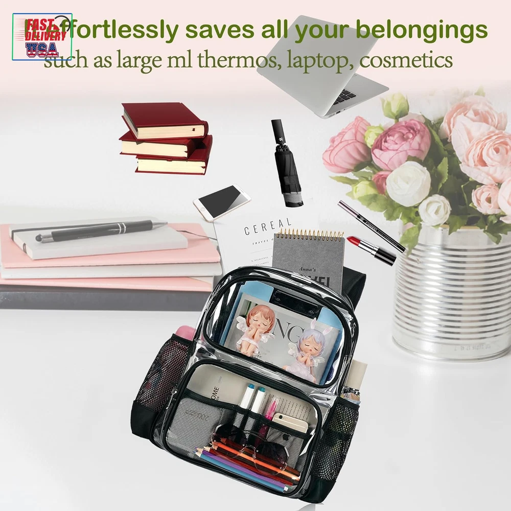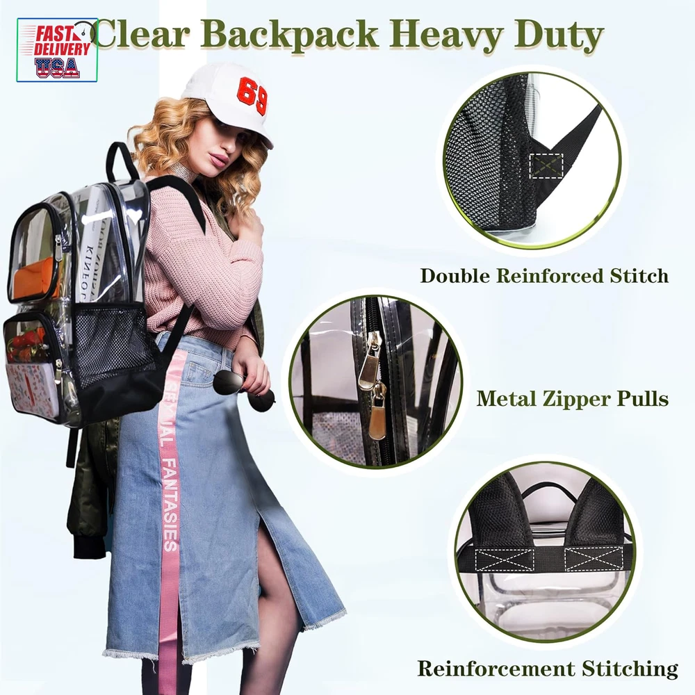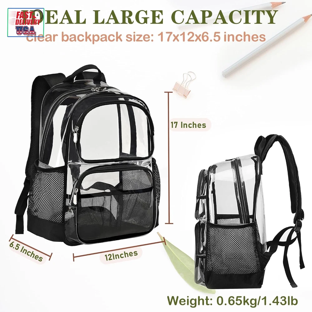 Store New Arrivals Add to Favorite View Feedback Contact Clear Backpack Heavy Duty,17'' Transparent Bag See through Backpack for College Work Travel Security,Black Description Age Range Description Adult Capacity Total 21.6 Liters Number Of Items 1 Color Black Product Dimensions 6.5 x 12 x 17 inches Item Weight 1.43 Pounds Department unisex-adult Compliant with Back to School Clear Bag Policy:This Clear backpack is a perfect option for teenager students who attend schools with strict security measures, 0.6mm PVC transparent design allows quick and easy check of the contents, and convenient to organize and prepare everything. Large Clear Backpack: With size of 17'' x 12''x 6.5'' for school backpack,the see through backpack has a main double zipper compartment that holds binders, laptops, clothing and books;1 upper front zipper pocket, 1 lower front zipper compartment, and 2 side mesh pouches. Comfortable School Backpack Design: Padded and breathable mesh back panel of this clear backpack design help with ventilation, air convection, and heat elimination. Comfortable, wide, and breathable mesh shoulder straps with plentiful sponge pads help relieve shoulder pressure. Ergonomic design ensures that the travel backpack is comfortable to wear when loaded with all your gear. Breathable & Adjustable Shoulder Strap: This see through backpack equipment with ring type adjustable hasp, adjust the strap length freely ,reduce the burden of weight, protect the back and shoulder effectively, more comfortable for your life.Bar-tacked with 6 times stitching at the end to reinforce its bearing, without worry break down; two straps maximum load bearing 66lb. Fashion versatile Clear Backpack :GiMiUiTo clear backpack available in various colors,you can choose which color you like. Its durability and large capacity make it versatile enough to carry everything you need, keeping your hands free.It's suitable for school, festival, sporting event, Game, concert, airport and travel; Great for security workplace where requires clear bag policy. Product Description ABOUT US We offer the best prices around on high quality products. Our E-store includes media such as books, movies, music and games while offering electronics, toys, sporting apparel, clothing, tools, general home, garden items and more. SHIPPING We are always working hard to ensure your package arrives as soon as possible. Please understand that some factors like weather, high postal traffic, and the performance of shipping companies are outside of our control. We offer free shipping to the lower 48 states and ship within 2 business days of payment, usually sooner. We do not accept P.O. Boxes. Please provide a physical address. For shipping outside of the continental USA, we only use eBay's Global Shipping Program.The item is shipped to KY and then sent to the rest of the world. International customers are responsible for all duties and taxes. Continue to check out in order to calculate costs for shipping the item to your country. Messages regarding eBay's Global Shipping Program MUST be directed at eBay EXCLUSIVELY. RETURNS We offer a 30-Day Return Policy on items which you are not completely satisfied with. You have the option for a full-refund or an exchange of the item. No returns are available on items shipped outside of the USA. PAYMENT We accept PayPal. CONTACT US This page content is yet to come Please ad us to your favorite seller and visit again later Thank You CUSTOMER SATISFACTION We try our very best to make sure every customer is completely satisfied. If there's a problem, message us! We're happy to help. WE ACCEPT Copyright © 2021 AutoDS. | All Rights Reserved