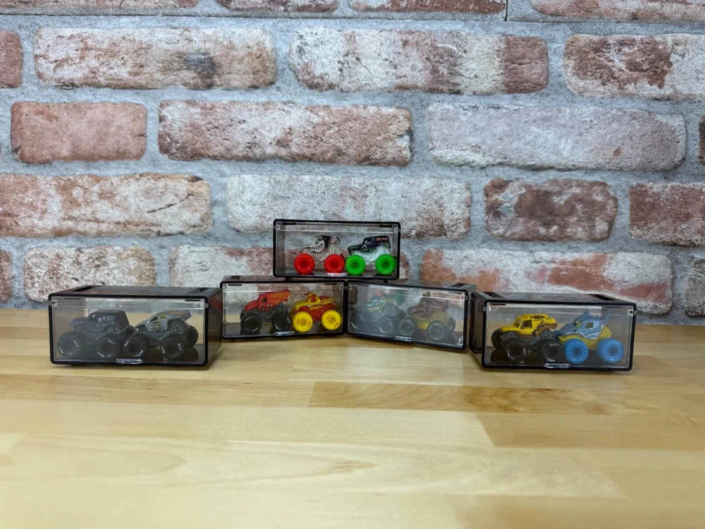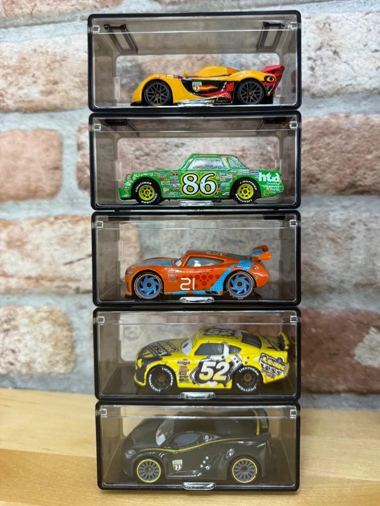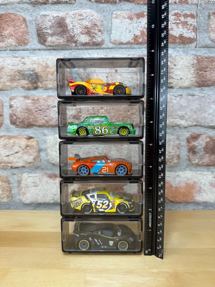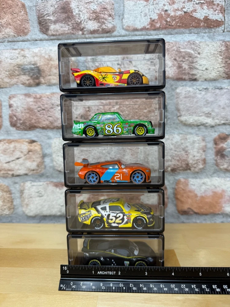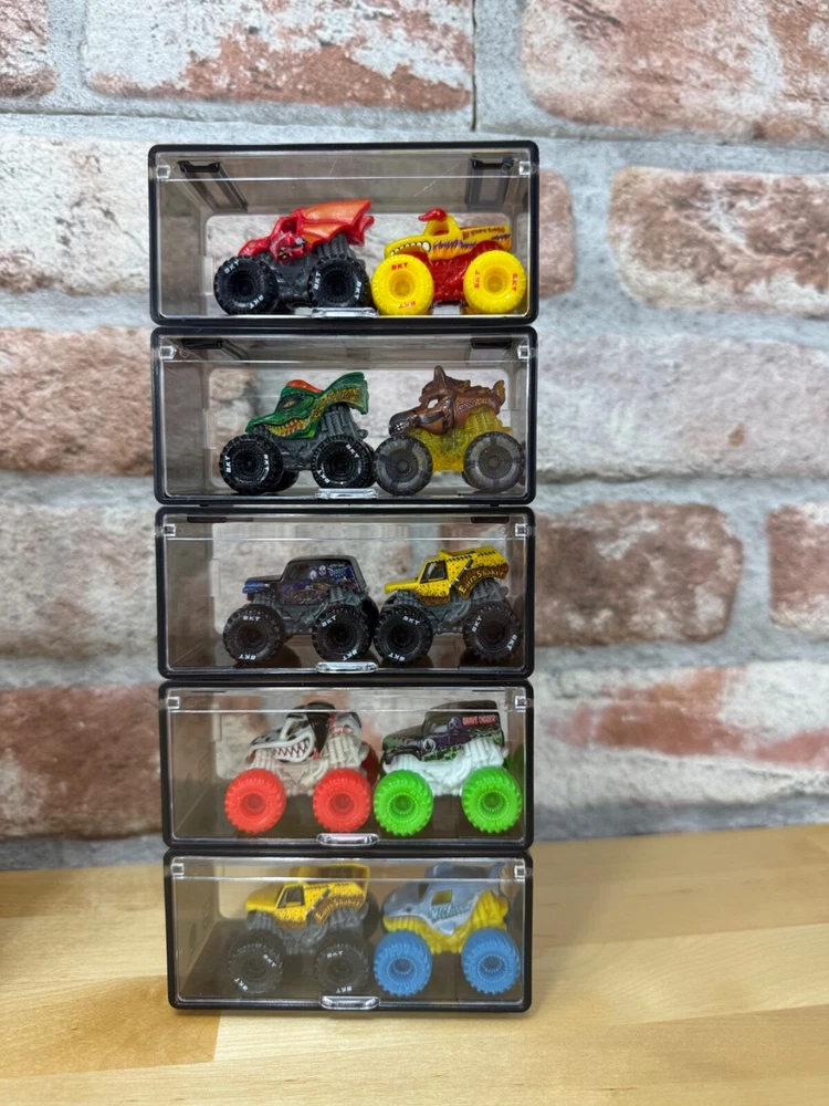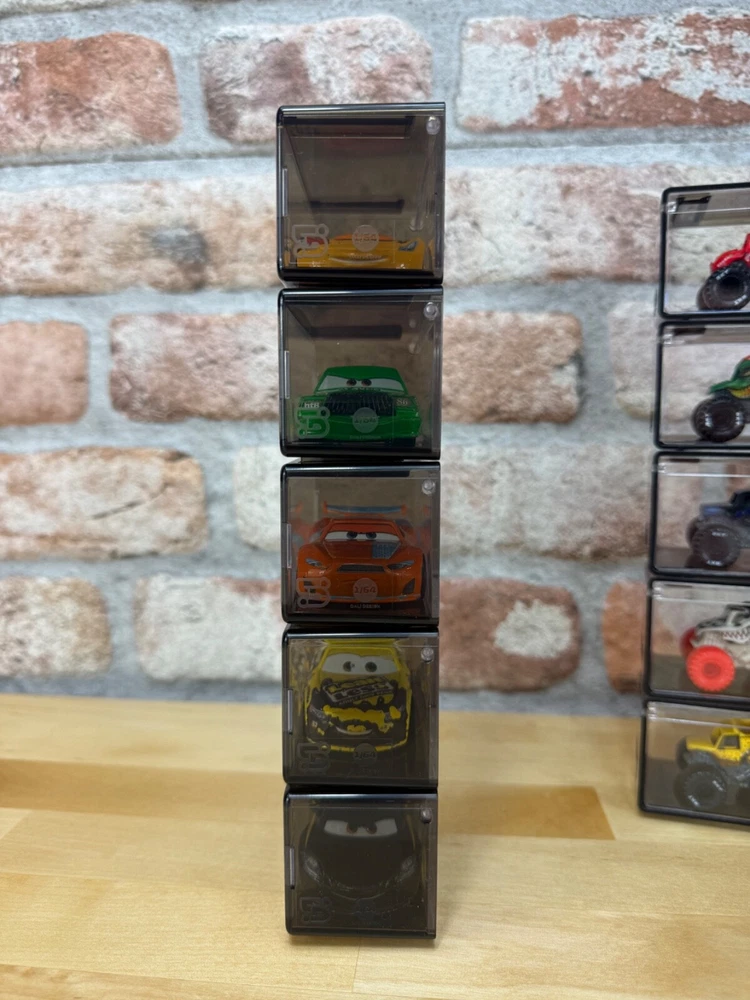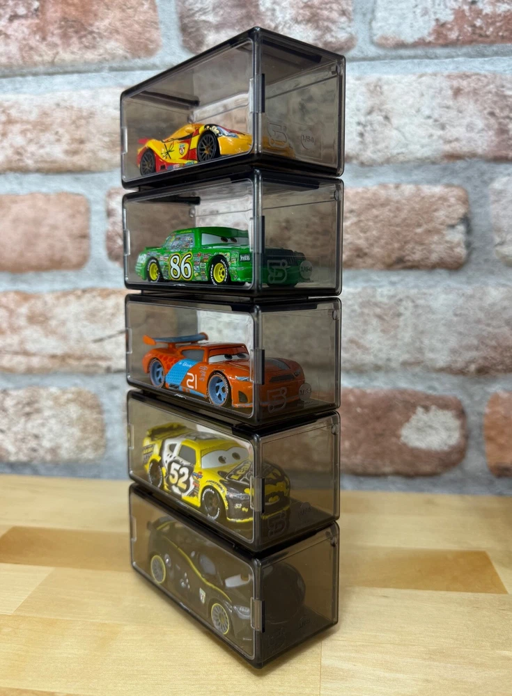 This listing is for 10 individual pieces Fits a wide range of Cars from Matchbox, Hot Wheels, plus many other 1/64 collectibles Transparent on all sides with a tint of gray Can stack as many as you want, creating your own unique display