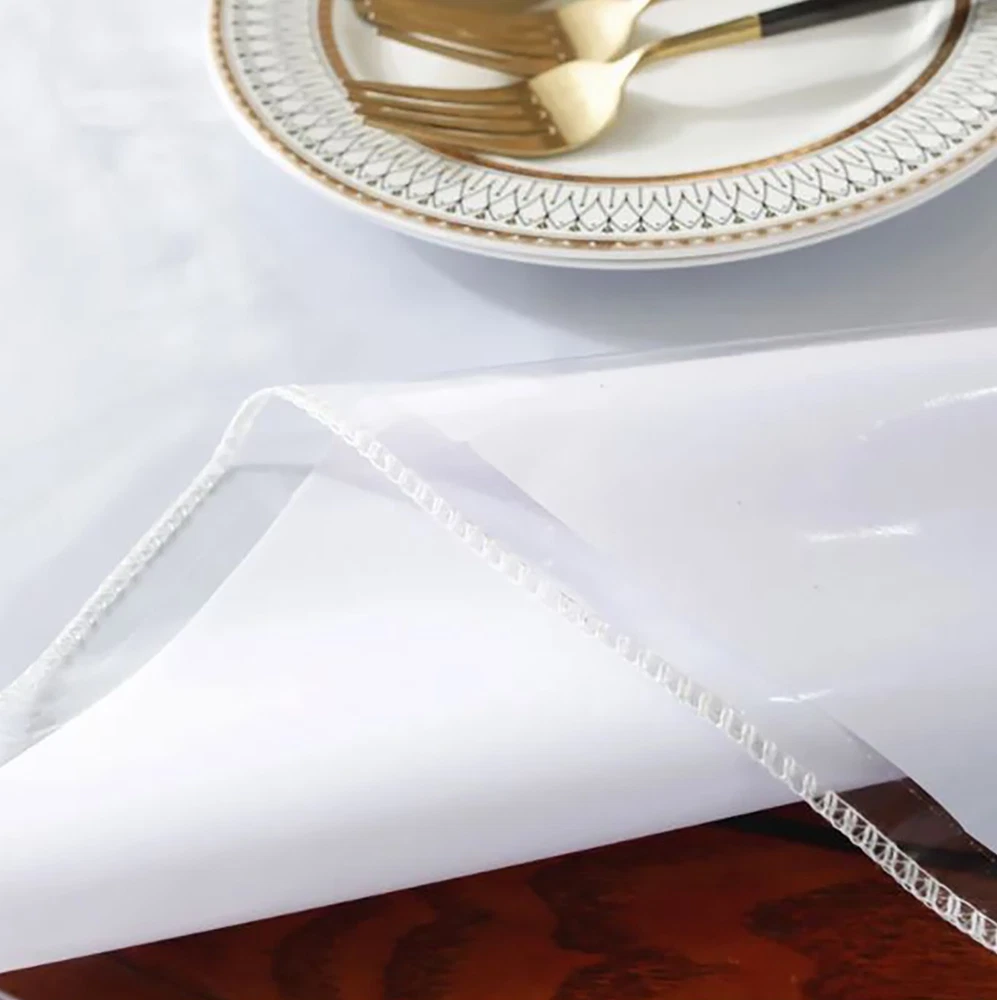 Premium Clear Plastic Vinyl Table Cover Tablecloth Protector Transparent This is a brand new Premium Vinyl Table Cover produced by Home Mart Goods. Bring style and comfort to any room with this attractive Modern design Premium Vinyl Table Cover. The item will be shipped folded and there will be creases. You can remove these creases using a hairdryer. THICKNESS: This item has a thickness of 3.6 Gauge. Please check the thickness of this item before placing your order. Double Stitch Edge Protect your dining table from spills and stains with our Clear Plastic Vinyl Fabric Table Cover Protector Tablecloth. Made from high-quality, durable material, this tablecloth is strong and long-lasting, providing superior protection to your dining table. Its waterproof and stain-resistant properties make it perfect for dining events where spills are inevitable. The scratch, oil and wrinkle-resistant properties of this tablecloth make it an ideal choice for everyday use, party, BBQ, outdoor events, and more. Keep your dining table looking clean and new with our easy-to-clean heat-resistant table cover that requires just a simple wipe down with a damp cloth. Features: High-quality durable Vinyl material The item will be shipped folded and there will be creases. You can remove these creases using a hairdryer. Waterproof, stain-resistant, and wrinkle-free Suitable for multiple purposes Easy to clean with just a simple wipe down Scratch and oil proof protection Heat resistant material Perfect for indoor and outdoor use Other section: This tablecloth is not machine washable and should not be bleached or ironed. Shipping Terms : We ship within 24 hours of receiving payment. Domestic Shipping: USPS Priority Mail or Fedex Smart Post. Please ask for our Combined shipping discount when purchasing multiple items from our Ebay store. International Shipping: Orders for International buyers can be placed through Ebay's International shipping program. Payment Method : Only Paypal Payment. Payment must be received immediately at the time of purchase.
