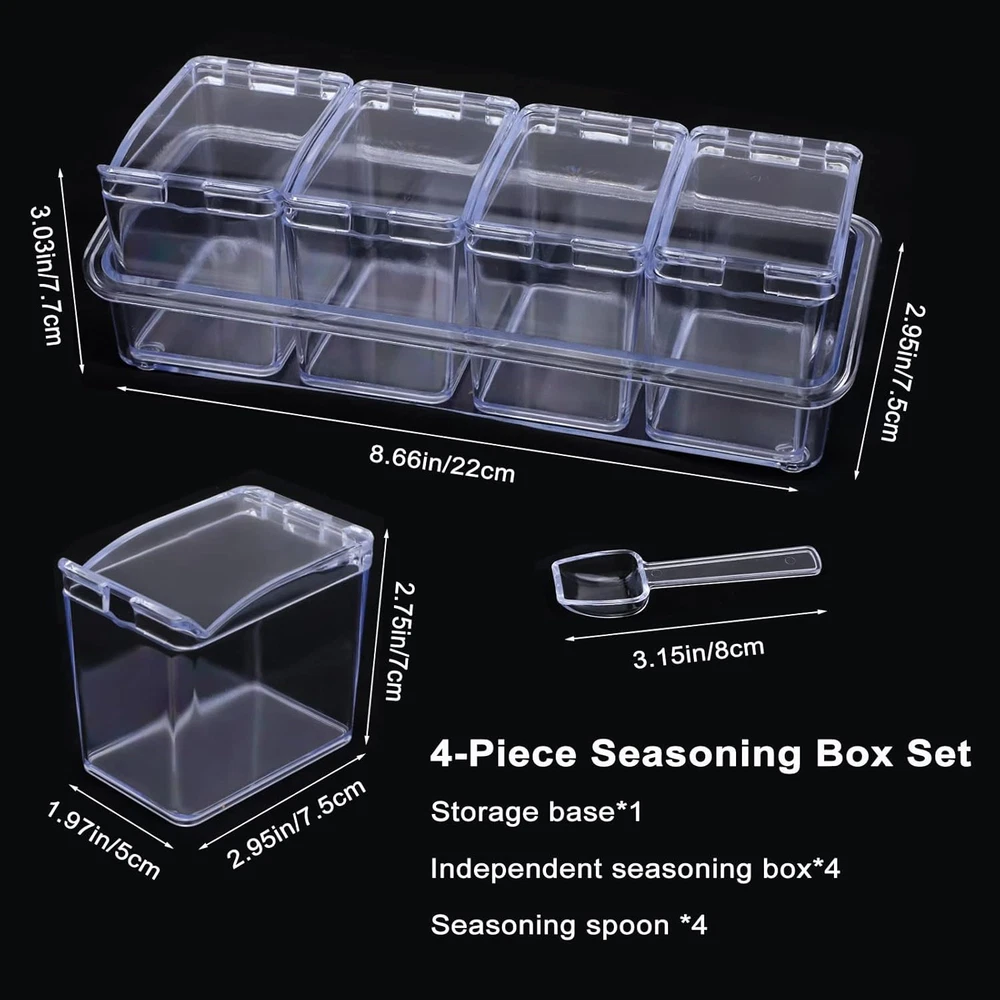 Store New Arrivals Add to Favorite View Feedback Contact Clear Seasoning Box, 4 Piece Seasoning Rack Spice Pots, Plastic Storage Container Condiment Jars with Lids and Spoon, Kitchen Organization Containers for Spice, Salt, Sugar, Cruet Description Item model number 98411 Closure Type Flip Top Pattern No Country of Origin China Number of Sets 1 Specific Uses For Product Kitchen organization, Spice storage, Condiment storage Is Microwaveable No Unit Count 1.0 Count Batteries Required? No Material Acrylic Item Form Jar, multi-compartment Package Dimensions 9.61 x 4.17 x 3.46 inches Material Type Free BPA Free, Latex Free, Lead Free, Petroleum Free, Nitrosamine Free, PVC Free, Phthalate Free Item Package Quantity 1 Is Dishwasher Safe Yes Item Weight 14.4 ounces Size 9.45x3.54x2.95in 24x9x7.5cm Material Feature Food Grade Special Features Durable, Compact Special Feature Durable, Compact Color 1 Set Container Shape Rectangular Recommended Uses For Product Spices Included Components Spoon, Box Product Dimensions 9.45"L x 3.54"W x 2.95"H Product Care Instructions Dishwasher Safe Number Of Pieces 1 【High Quality Material】-- The storage spice jar is made of high quality food grade PS material, crystal clear, safe and reliable, no odor, intimate guardian of your family's health. Durable material, even if dropped, will not be fragile like glass or ceramic, you can store your ingredients with peace of mind. 【Transparent Visible】The transparent spice pots allows you to identify the various spices in the spice box at a glance, even without labeling. The fully transparent box allows you to easily see the remaining quantity, helping to remind you to replenish the spices in time. 【Sealed & Practical】-- The condiment containers with lids has a certain seal to keep the spices fresh and protected from dust or other dirty things. At the same time, there is a gap that allows the handle of the spoon to stick out after filling it eight full with seasoning, so that it is easy to use the seasoning and enjoy your cooking time. 【Convenient & Neat】-- The value set includes 4 spice dispensers, 4 lovely serving spoons, and 1 practical tray. The individual spice boxes enable you to sort and use them according to your needs. The large tray is great for keeping the spice boxes neat and organized, making it a perfect choice for those with limited space to keep the kitchen table tidy. 【Multipurpose】 Clear spices container set is perfect for home, hotel, cafe, buffet, party, etc. Perfect for neatly storing a variety of spices, including salt, sugar, pepper, star anise, cumin, flour, tea, coffee, spices, ice cream, hot cocoa toppings, etc. Product Description Product Information Packing include: 4pcs spice pots, 4pcs serving spoons, 1pcs storage tray Material: food grade PS material Color: clear Size: Single spice pots: 1.97x2.95x2.75in / 5x7.5x7cm Single spoon size: 3.15in / 8cm Single tray size: 8.66x2.95in / 22x7.5cm ABOUT US We offer the best prices around on high quality products. Our E-store includes media such as books, movies, music and games while offering electronics, toys, sporting apparel, clothing, tools, general home, garden items and more. SHIPPING We are always working hard to ensure your package arrives as soon as possible. Please understand that some factors like weather, high postal traffic, and the performance of shipping companies are outside of our control. We offer free shipping to the lower 48 states and ship within 2 business days of payment, usually sooner. We do not accept P.O. Boxes. Please provide a physical address. For shipping outside of the continental USA, we only use eBay's Global Shipping Program.The item is shipped to KY and then sent to the rest of the world. International customers are responsible for all duties and taxes. Continue to check out in order to calculate costs for shipping the item to your country. Messages regarding eBay's Global Shipping Program MUST be directed at eBay EXCLUSIVELY. RETURNS We offer a 30-Day Return Policy on items which you are not completely satisfied with. You have the option for a full-refund or an exchange of the item. No returns are available on items shipped outside of the USA. PAYMENT We accept PayPal. CONTACT US This page content is yet to come Please ad us to your favorite seller and visit again later Thank You CUSTOMER SATISFACTION We try our very best to make sure every customer is completely satisfied. If there's a problem, message us! We're happy to help. WE ACCEPT Copyright © 2021 AutoDS. | All Rights Reserved