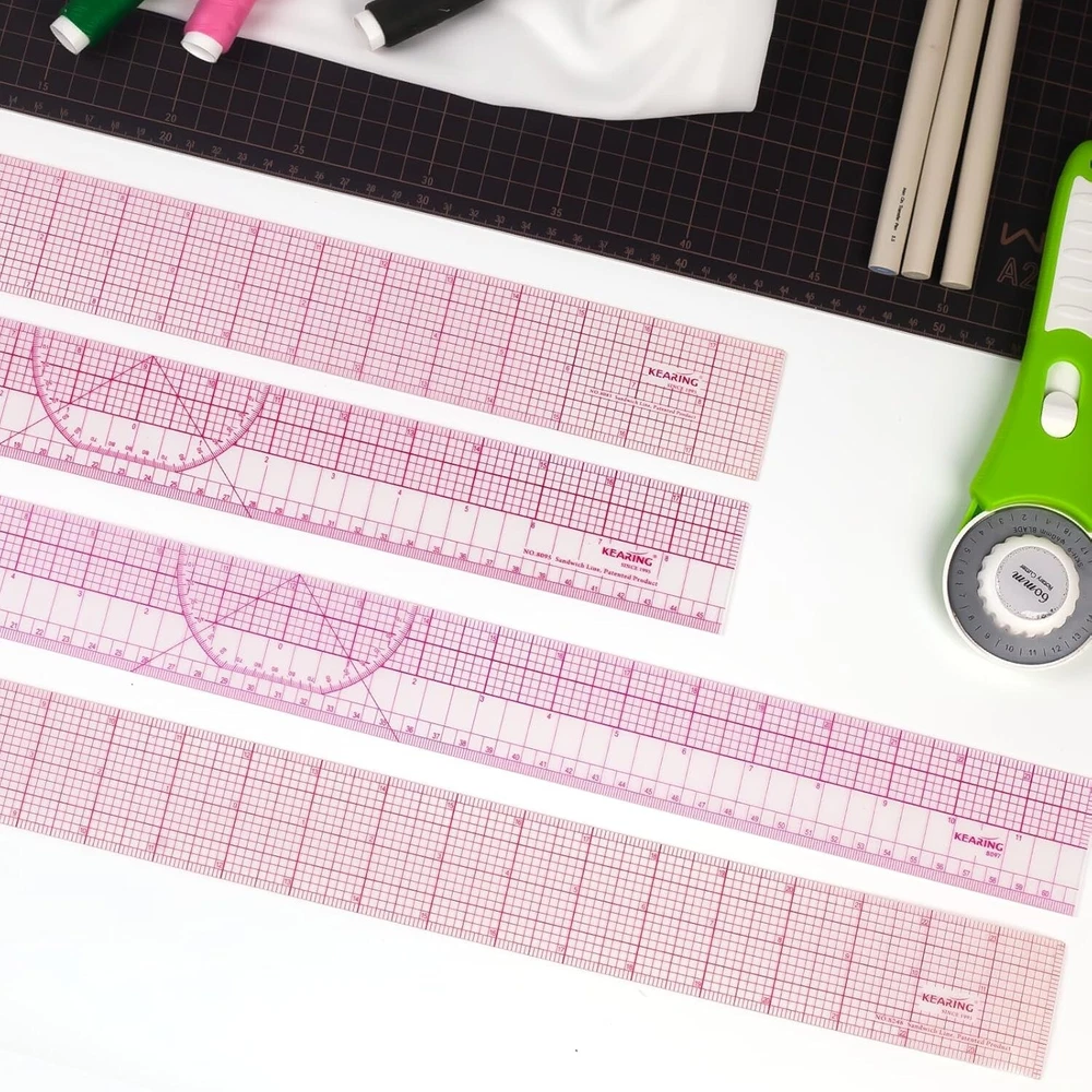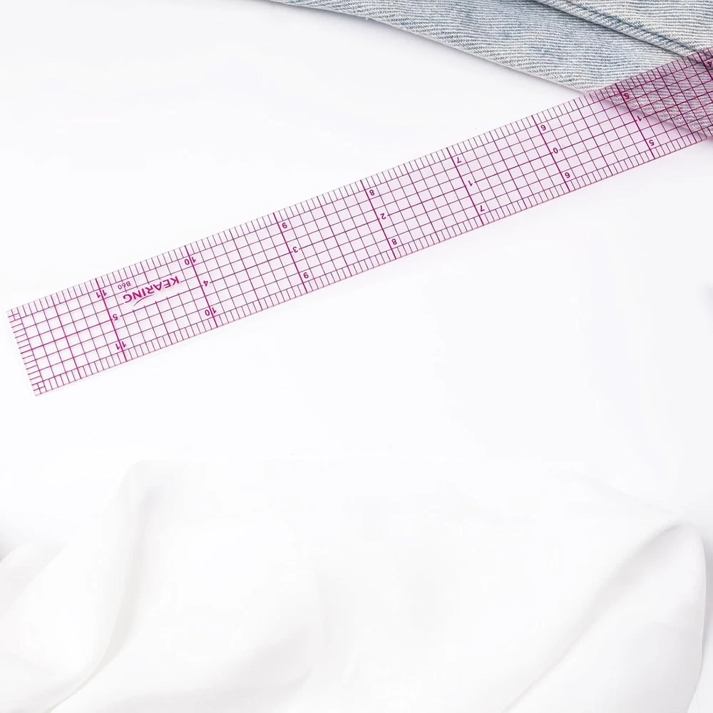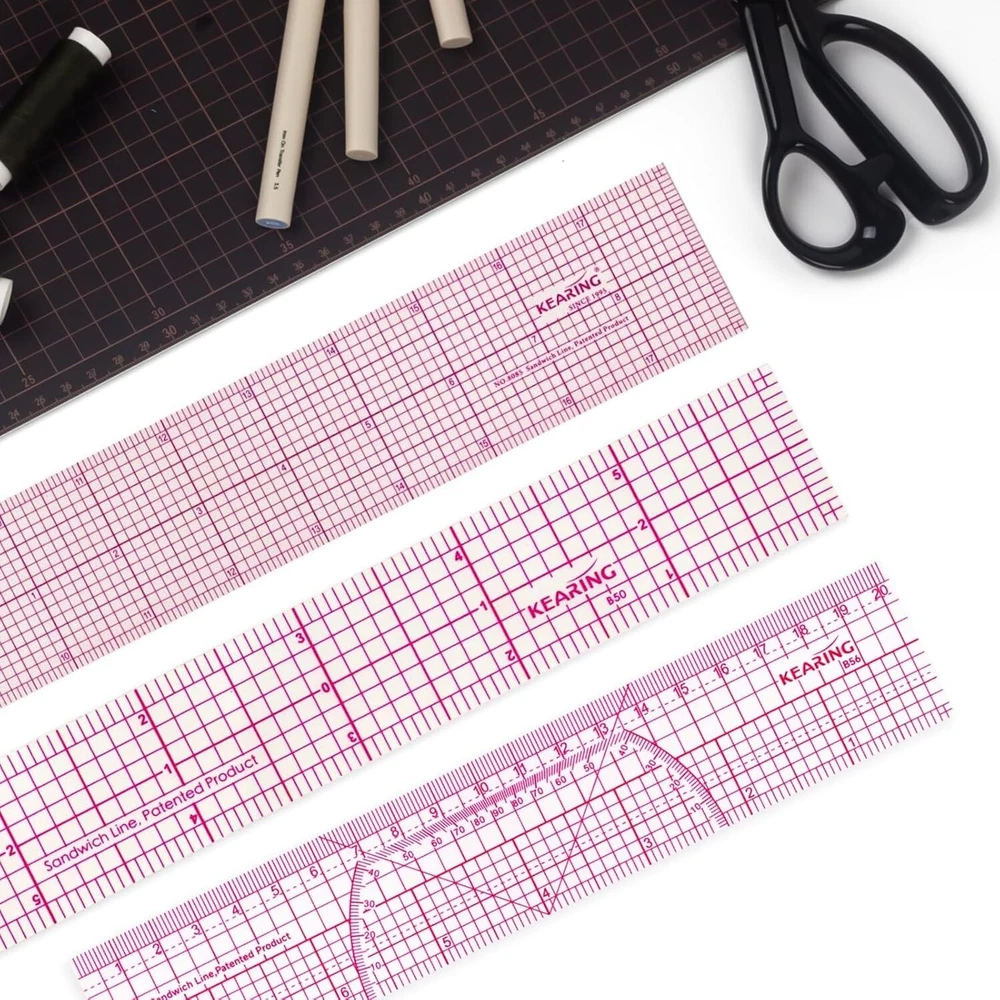 Grading Ruler for Sewing, Quilting & Dressmaking The Kearing Pattern Grading Ruler is an essential tool for sewing, quilting, and dressmaking. Designed with precision and durability in mind, this clear plastic ruler ensures accurate measurements and easy adjustments for every project. Its flexible 1.2mm construction offers both strength and versatility, while the zero-centering scale and sandwich line printing provide long-lasting accuracy. Whether you’re drafting patterns, cutting fabric, or marking designs, this multi-purpose ruler is trusted by professionals and hobbyists alike. Sewing Ruler Features Durable Plastic Construction: 1.2mm thick, flexible, and strong for long-lasting performance. Sandwich Line Printing: Prevents numbers and scales from rubbing off for reliable accuracy. Transparent Design: Allows precise fabric placement and easy alignment during cutting or marking. Zero-Centering Scale: Simplifies adjustments and ensures balanced, accurate measurements. Multi-Purpose Tool: Ideal for sewing, quilting, fashion design, and dressmaking projects. Lightweight Build: Easy to handle for professional use or at-home crafting.