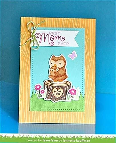 You'll have a hoot with this set of clear stamps featuring a mama fox, owl, babies, a tree stump, and lots of matching sentiments. These stamps are perfect for Mother's Day, but are also great for baby cards, friendship cards, and more! Pair them with Dies - Mom + Me (LF1135) to make scrapbooks, stationery, and other crafts. Gently peel the stamp off the sheet, position on an acrylic block, and stamp. Approximate stamp sizes: 1. Mama owl 7/8" x 1 1/4" 2. Tree stump 1 1/2" x 1" 3. Baby fox 11/16" x 3/4" 4. Mom 1 3/8" x 9/16" 5. Happy mother's day 1 3/8" x 1/8" Approximate stamp sizes: 7/8" x 1 1/4", 1 1/2" x 1", 11/16" x 3/4", 1 3/8" x 9/16", 1 3/8" x 1/8". This package contains 32 clear stamps on a 4" x 6" backing sheet. Coordinating Die Cuts: Dies - Mom + Me (LF1135). WARNING: Choking Hazard - small parts. Not for children under 3 years. Made in USA.