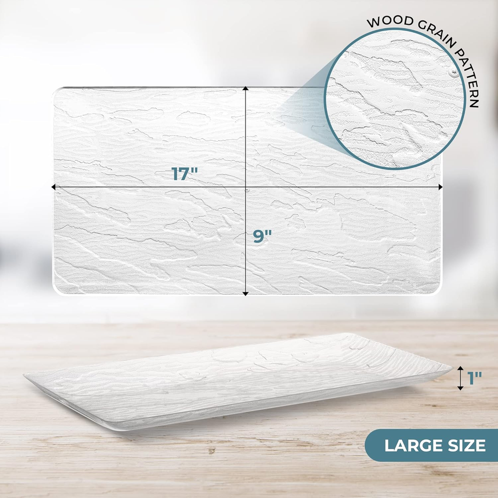 Store New Arrivals Add to Favorite View Feedback Contact - Serving Platters and Trays, Plastic Platter Tray, Wood Pattern Clear Serving Tray, Clear Rectangular Tray, Clear Trays for Food, Stackable & Disposable Party Platters, 5 Pack - 17X9 Description Style Modern Number of Items 5 Pattern Solid Country of Origin China Is Oven Safe No Theme Modern Wood Grain Material Plastic Finish Type Painted Is Dishwasher Safe No Item Weight 1.87 pounds Occasion Wedding, Birthday Special Feature Disposable,Durable,Premium Color Clear Is Discontinued By Manufacturer No Shape Rectangular Recommended Uses For Product Food Tray Type Serving Tray Product Dimensions 17"L x 9"W x 9"H Product Care Instructions Hand Wash Only Size Large 17" x 9" SOLVE YOUR SERVING NEEDS WITH OUR SET OF 5 WOOD GRAIN PLASTIC TRAYS: Tired of flimsy, unattractive serving trays that fail to impress? Say goodbye to the hassle with our set of 5 sturdy, premium wood grain plastic serving platters. Ideal for hosts who need reliable and stylish serving ware, our clear plastic trays for serving food offer a great solution for any occasion. Impress your guests with high-quality party trays and platters that not only look elegant but perform exceptionally well. IMPROVE YOUR EVENTS WITH OUR SOPHISTICATED WOOD GRAIN DESIGN: Wow your guests with the refined, natural look of our clear plastic serving trays and trays. Ideal for weddings, parties, and other gatherings, these trays add a touch of elegance to any event. The clear food trays for party buffet's sleek and sophisticated design enhances any table setting, making your rectangle plastic plates for parties truly unforgettable. ENJOY THE CONVENIENCE OF DURABLE AND REUSABLE TRAYS: Invest in quality with our sturdy, reusable clear plastic trays. Made to withstand multiple uses when hand-washed, these large rectangular plastic trays offer a sustainable option without sacrificing convenience. Say goodbye to single-use disposables and enjoy the reliability of clear plastic trays rectangular that make hosting easier than ever. SAVE TIME WITH DISPOSABLE OPTIONS: This rectangular plastic tray is reusable or disposable. Whether you choose to dispose of them after use for a quick cleanup or hand-wash them for future events, our clear serving trays offer flexibility that suits your needs. Enjoy the convenience of disposable serving trays and platters without compromising style or quality. IMPRESS WITH A GENEROUS SIZE FOR ANY OCCASION: Measuring 17x9 inches and featuring a practical rectangular shape, our plastic rectangle plates provide ample space for serving a variety of foods. Whether you’re hosting a small gathering or a large event, these party platters and trays are designed to meet your needs with style and practicality. This rectangle plastic plate can be used as cookie trays for parties or an appetizer serving tray. Product Description Perfect for Various Occasions: • Weddings • Receptions • Buffets • Holiday Meals • Birthday Parties • And More! Sophisticated Wood Grain Design Crafted from Premium, Durable Hard Plastic. Measurements Rectangular Shape Measures 17" x 9" An Elegant Touch Wood Grain Pattern Adds a Touch of Elegance. Convenient and Practical • Comes in a Package of 5 Clear Serving Trays • Dispose After Use to Save Time on Cleanup • Trays Can Be Hand-washed and Reused for Sustainability ABOUT US We offer the best prices around on high quality products. Our E-store includes media such as books, movies, music and games while offering electronics, toys, sporting apparel, clothing, tools, general home, garden items and more. SHIPPING We are always working hard to ensure your package arrives as soon as possible. Please understand that some factors like weather, high postal traffic, and the performance of shipping companies are outside of our control. We offer free shipping to the lower 48 states and ship within 2 business days of payment, usually sooner. We do not accept P.O. Boxes. Please provide a physical address. For shipping outside of the continental USA, we only use eBay's Global Shipping Program.The item is shipped to KY and then sent to the rest of the world. International customers are responsible for all duties and taxes. Continue to check out in order to calculate costs for shipping the item to your country. Messages regarding eBay's Global Shipping Program MUST be directed at eBay EXCLUSIVELY. RETURNS We offer a 30-Day Return Policy on items which you are not completely satisfied with. You have the option for a full-refund or an exchange of the item. No returns are available on items shipped outside of the USA. PAYMENT We accept PayPal. CONTACT US This page content is yet to come Please ad us to your favorite seller and visit again later Thank You CUSTOMER SATISFACTION We try our very best to make sure every customer is completely satisfied. If there's a problem, message us! We're happy to help. WE ACCEPT Copyright © 2021 AutoDS. | All Rights Reserved