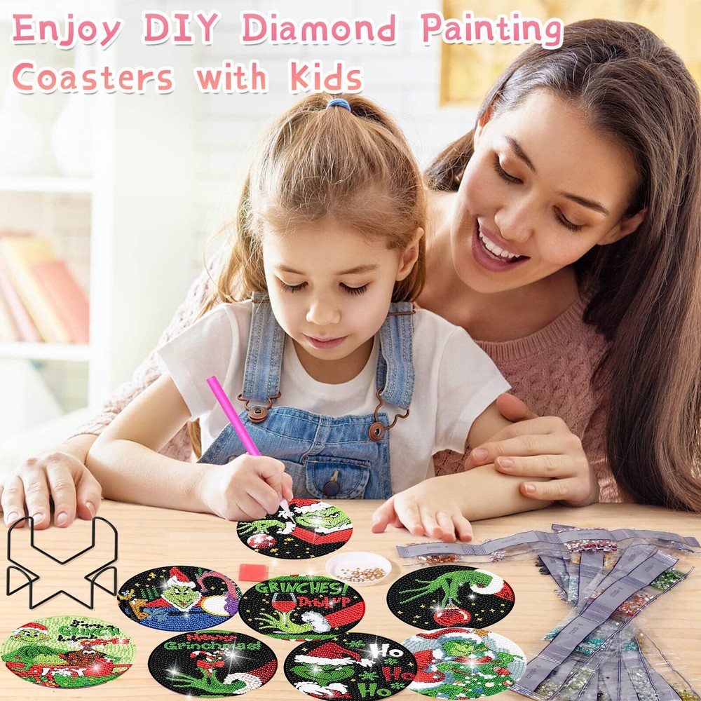 Clendo 8-Piece Christmas Diamond Painting Coaster Kit with Holder for DIY Craft Enthusiasts