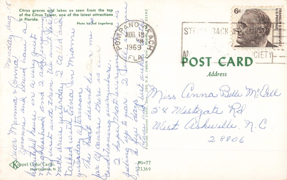 Clermont FL Florida, Citrus Groves & Lakes from Citrus Tower, Vintage Postcard
