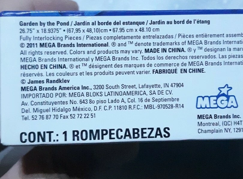 Material:CardboardFeatures:Interlocking PiecesNumber of Pieces:1000Age Level:12-16 Years, 17 Years & UpYear:2011UPC:072348210014Country/Region of Manufacture:United StatesMPN:21001AINRecommended Age Range:12+Modified Item:NoBrand:MEGA BrandsTheme:Landscapesgtin13:072348210014Custom Bundle:NoColor:Multi-ColorCharacter Family:Jigsaw Puzzle