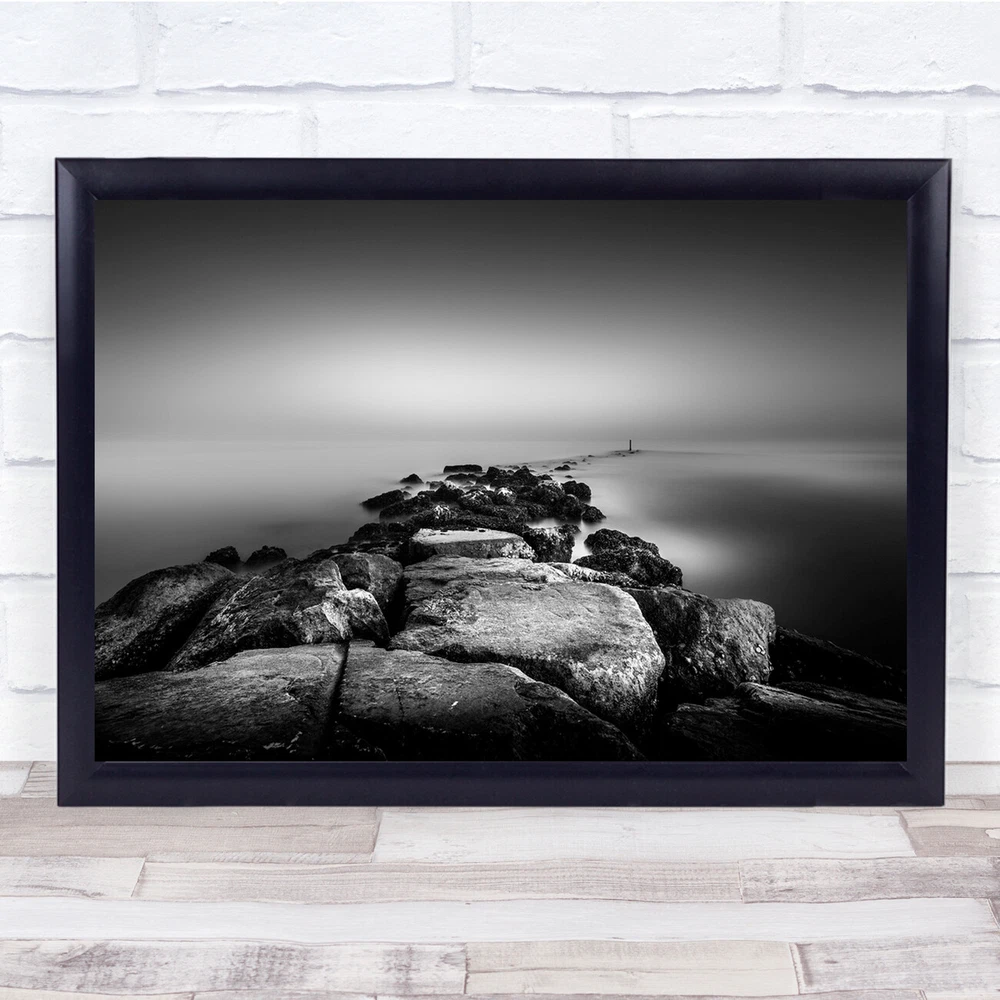 Cliff Sea Silence Fog Black Ocean Peaceful Long Exposure Still Wall Art Print