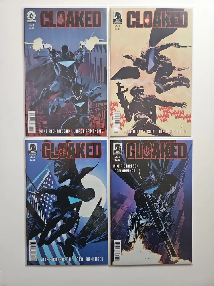 Style: Color Tradition: US Comics Publisher: Dark Horse Comics Issue Number: 1-4 Features: First Printing, Boarded, Set, Complete Series Format: Mixed Lot Character: SET Artist/Writer: Mike Richardson Type: Comic Book Publication Year: 2021 Signed: No Unit of Sale: Comic Book Lot Era: Modern Age (1992-Now) Series Title: Cloaked Language: English Genre: Action, Adventure, Superheroes