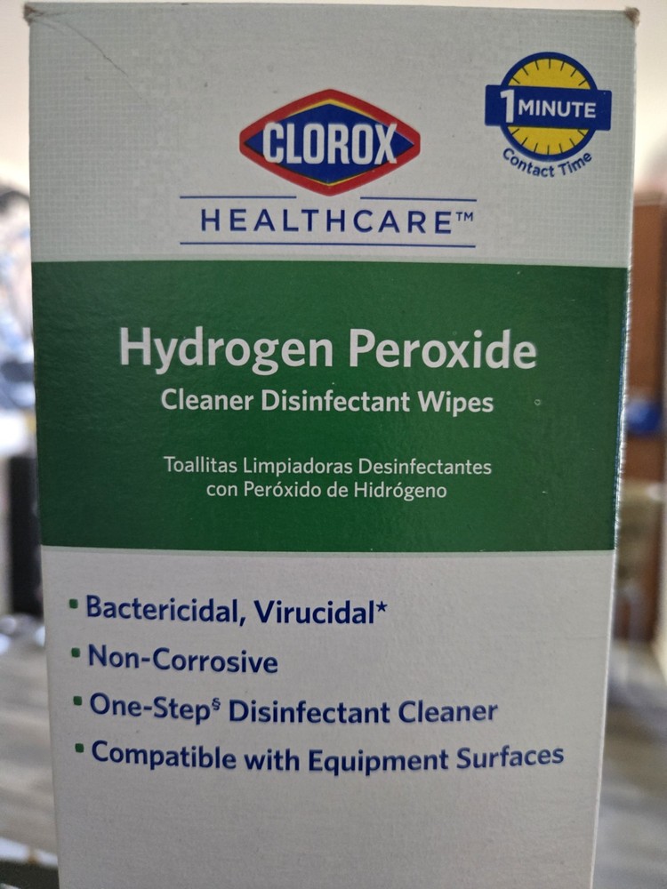 This Clorox Healthcare Hydrogen Peroxide Cleaner Disinfectant Wipes packet contains 60 individual pieces that can be used to clean and disinfect various surfaces in businesses and industrial settings. The wipes are formulated with hydrogen peroxide and other disinfecting agents that can effectively kill germs and bacteria, ensuring a clean and hygienic environment. The wipes come in a convenient wipe form, making them easy to use and carry. They are EPA registered and have been proven to be effective against a wide range of viruses and bacteria. With an expiration date of 1/23, these wipes are a great addition to any cleaning and janitorial supply cabinet.