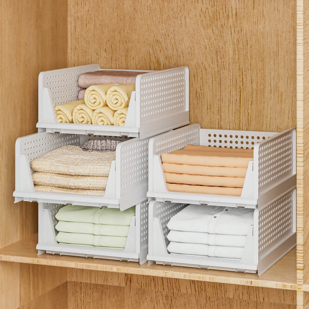 [Multi-function] Stackable storage box, suitable for storing T-shirts, towels, clothes, toys, snacks, books, documents and other items. Suitable for wardrobe, dormitory, bathroom, kitchen, living room, office. Each box measures 16.6 "L x 13.1" W x 7.3 "H. [Maximize storage space] The closet organizer is stackable, keeping the home vertical space organized. Freely stack and adjust the number of wardrobe drawers to best fit your wardrobe or storage space. The collapsible design of the locker allows it not to take up space when not in use, which also helps to save more space. [Slide design] The slide design at the bottom, even in the most internal, can also be convenient to pick items. Don't worry about messing up anything on it. This is a good solution, especially for stacking clothes for storage. [Durable] The wardrobe organization frame is made of high quality and strong PP plastic, durable, beautiful in shape and durable. The clothes organizer is easy to clean and requires only a simple wipe. [Please note] : Stackable baskets do not slide out completely like drawers. If you need to pull it out, lean it against the wall, holding the drawer in place with one hand and pulling out only the top of the unit with the other. Color: White Material: PP