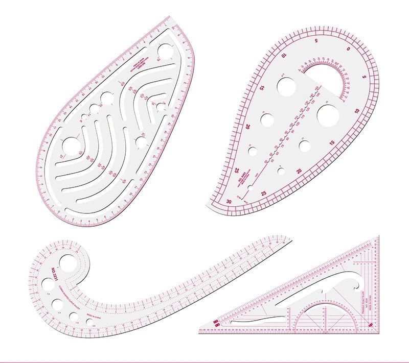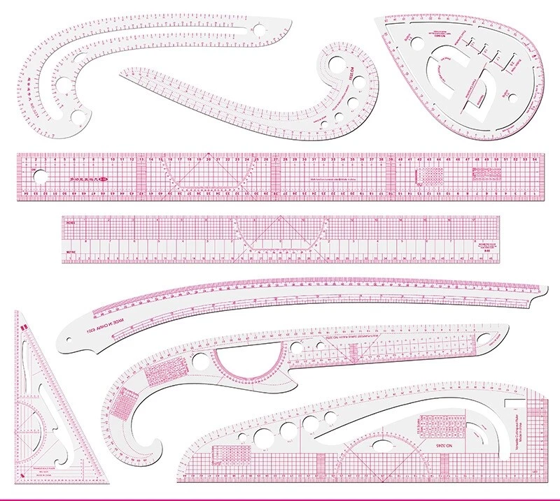 Clothing Patterning Ruler, Yard Ruler, Sewing Ruler Set Ruler Peculiarity: Name: Clothing sewing ruler set Material: new environmentally friendly PVC Packing: Each ruler is individually wrapped and then packed into an OPP bag. Precise scales, clear lines, soft and flexible mapping, durable and commonly used in: clothing design. Suitable for drawing, plate making, printing, grading, clothing design, etc., widely used in various industries.
