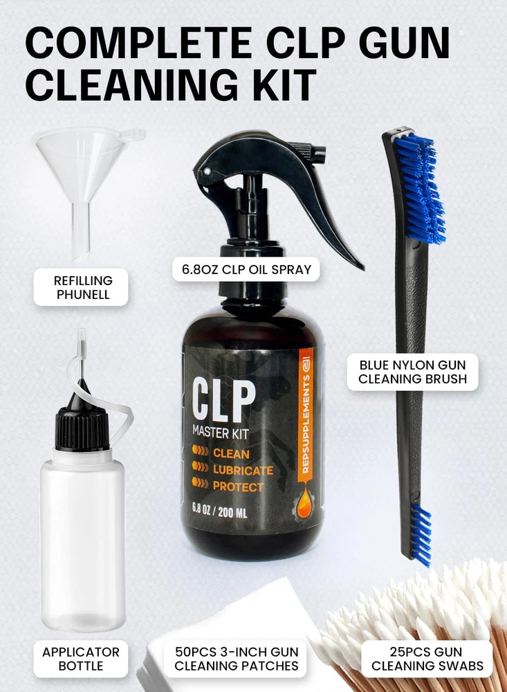 Store New Arrivals Add to Favorite View Feedback Contact Clp Gun Cleaning Oil Kit 3-In-1 Cleans, Lubes, Protects - 6.8 Oz Sprayer Clp Gun Cleaner and Lubricant, Needle Oiler, Cleaning Patches, Cleaning Swabs and Brush - Clp Gun Oil and Cleaning Kit Description Manufacturer REPSUPPLEMENTS Warranty Description Manufacturer Warranty 90 days from date of purchase Brand Name REPSUPPLEMENTS Color CLP kit Brand REPSUPPLEMENTS Material Cotton Style Cleaning Kit Package Weight 0.32 Kilograms Suggested Users "" Model Name CLP kit Liquid Volume 6.8 Fluid Ounces Item Package Dimensions L x W x H 6.89 x 4.49 x 3.19 inches Included Components patches 🔥 3-IN-1 Care: CLP Gun Cleaning Kit Cleans, Lubricates, And Protects In One Step. Ideal For All Moving Parts Especially Metal-on-metal Contacts. Left Guns Perfectly Oiled, Clean, And Ready To Go 🔥 Precision Application: Use The Pump Sprayer For A Fine Mist Or Needle Oiler For Targeted Precision. Ideal For Rails And Hard-To-Reach Areas, Ensuring Every Nook And Cranny Is In Prime Condition! 🔥 ALL-WEATHER RELIABILITY: Whether You're In The Biting Cold Or Under The Scorching Sun, The Gun Oil Won't Freeze Or Drip. Tested From -65°f To 400°f, It Ensures Your Gun Is Always Ready! 🔥 WHAT YOU GET: 6.8oz Clp Oil Spray, 1.5oz Applicator Bottle For Precision Oiling And Easy To Refill, 50pcs 3-inch Gun Cleaning Patches, 25pcs Gun Cleaning Swabs, Blue Nylon Gun Cleaning Brush! 🔥 HOME-FRIENDLY & ODORLESS: Safe For Home Use And Storage, No Scent, Optimal For Cleaning A Broad Range Of Gun Surfaces, From Metal And Carbon To Wood Stocks, Polymers, Plastics, And Camo Coatings. gun cleaning kit ABOUT US We offer the best prices around on high quality products. Our E-store includes media such as books, movies, music and games while offering electronics, toys, sporting apparel, clothing, tools, general home, garden items and more. SHIPPING We are always working hard to ensure your package arrives as soon as possible. Please understand that some factors like weather, high postal traffic, and the performance of shipping companies are outside of our control. We offer free shipping to the lower 48 states and ship within 2 business days of payment, usually sooner. We do not accept P.O. Boxes. Please provide a physical address. RETURNS We offer a 30-Day Return Policy on items which you are not completely satisfied with. You have the option for a full-refund or an exchange of the item. No returns are available on items shipped outside of the USA. PAYMENT We accept PayPal. CONTACT US This page content is yet to come Please ad us to your favorite seller and visit again later Thank You CUSTOMER SATISFACTION We try our very best to make sure every customer is completely satisfied. If there's a problem, message us! We're happy to help.