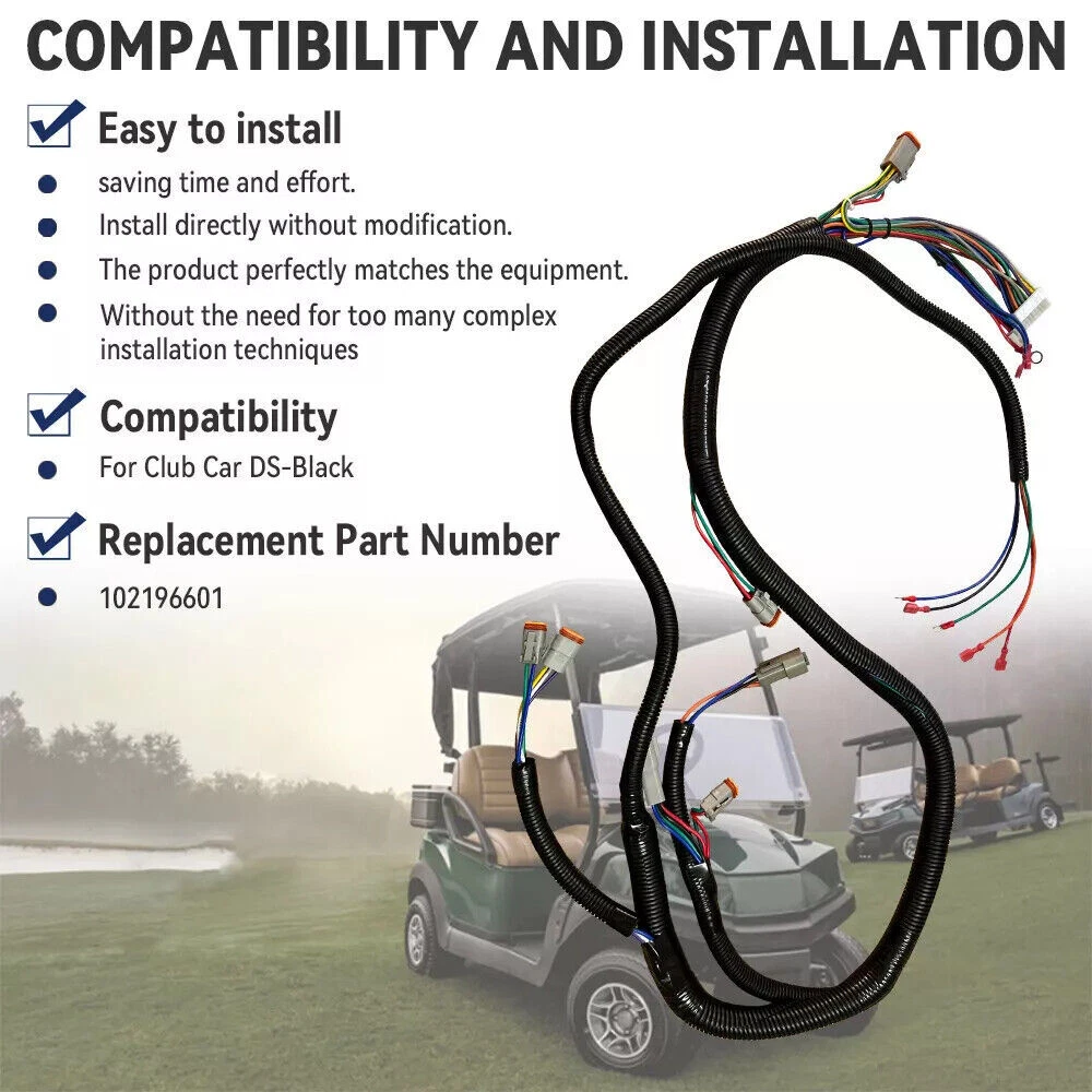Tips: Please Comfirm The Parts Number , And Confirm This Item Fits Your Car Before Purchasing. Not Included Installation Guide or Manual; Professional installation is recommended. Description: The engine wire harness is made of high-quality copper core wires, which has lower eccentricity and resistance, anti-corrosion, wear-resistant, non-deformation, well performed in conducting electricity. The wrapped plastic surfaces can stand high temperatures, all kinds of chemical reagent, strong impact, and press. Feature: Easy installation. Stable performance and high reliability. High quality metal and plastic. Specification: - Condition: 100% Brand New - Part Name: Control Wiring Harness - Part Number: 102196601 - Fitment Type: Direct Replacement Replaces part number : 102196601 Package Included: 1X Control Wiring Harness Fitment : (Compatibility is just for reference, please confirm your OE number.) Fit on Golf Cart Black Controller #1510A-5251 Fit Club Car DS-Black Controller #1510-5201 Note: --Please BE AWARE that the vehicle compatibility list on eBay may not be 100% accurate. Please Comfirm The Parts Number And Confirm This Item Fits Yours Before Purchasing. --Above listed items are a main reference, for detailed model, please use the year/make/model check finder and check the replace part numbers to confirm the compatibility before purchasing. --If you have any issues with our product, please contact us immediately and we will do our best to resolve your issue.