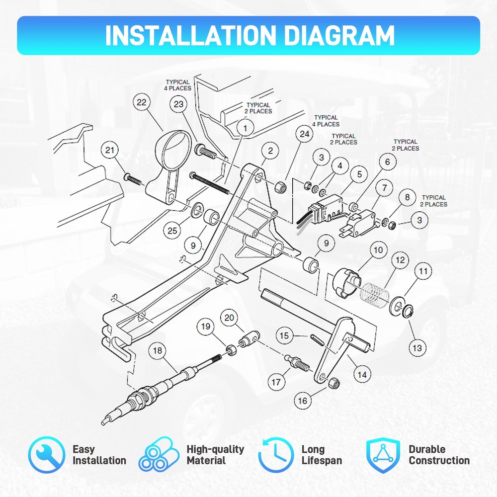 Club Car Forward Reverse Shifter Assembly for 1992-up DS Gas Golf Cart 1016947 Product Description Application: Compatible with 1992-Up Club Car DS golf cart. As a direct replacement for OEM part #1016947, our F&R shifter assembly kit ensures seamless installation and reliable performance Smooth Shifting: Engineered for precise control, our F&R shifter assembly offers effortless switching between forward and reverse gears, improving your golf cart’s handling and driving experience Attention: This F&R Shifter Assembly is pre-adjusted to the optimal angle and ready for immediate use. Before installation, flip your tow/run switch off, and disconnecting the batteries is recommended Purchase with Confidence: We provide 1 year product quality support to our customers. If you have any questions about our products, please feel free to contact us, we will reply to you within 24 hours Package Content & Part Number: 1* Forward and Reverse Shifter Assembly (# 1016947); 4* Phillips Screws (# 8248); 4* Nuts (# 8233). Designed for a straightforward, bolt-on installation with no complex modifications required Note: 1.We provide clear pictures, measurements where possible. Please check as much as possible to make sure the item is the one that you need. 2.Please allow 1-10mm deviation due to manual measurement. 3.Due to light and screen difference, the item's color may be slightly different from the pictures. 4.make sure that the size and shape of the product matches your car. 5.No installation guides are included, we highly recommend to seek professional installation. Any damage during installation will not be refunded.