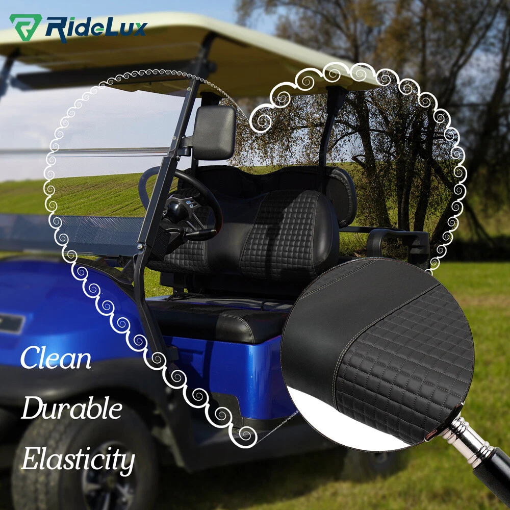 This front seat cover kit fits my Club Car Precedent perfectly! The no-staple design made installation a breeze—just slip them on and they stay in place. The vinyl feels durable and looks sleek in black. The pre-formed shape matches the original seat, and I love that I didn’t have to remove the old covers. Great fit, easy to clean, and adds a fresh look to my golf cart. Highly recommend for a quick upgrade!
