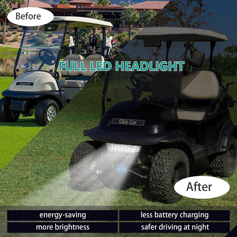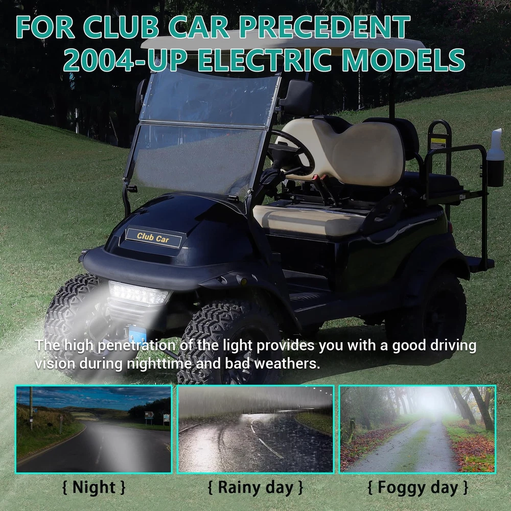 Club Car Precedent Led Head Light with Bumper Replacement for 2004-UP Electric Golf Carts Headlamp LED Features: LED light use less energy and save more battery life. Significantly brighter so that you can see better at night. Long usable time,may be used for up to 30,000 hours. More durable Replacement front head light and short harness and Heat Sink. Also, the headlight is the same as the original one, only for lighting Products containing front head light assembly, LED Light, short harness. Please note doesn't include the harness of the golf cart itself, only the harness of the headlights Easy Installation. Replaces club car oem 102524801,1025248-01 Golf cart headlight fits club car precedent 2004-up electric models Shipping We offer FREE shipping on all orders! We ship within Three business days of payment, usually sooner. We use a selection of shipping services such as UPS, FedEx, USPS etc. We only ship to the lower 48 states, no APO/FPO addresses or PO Boxes allowed. Local pickups and combined shipping options are not provided at this time. Return You can return a product for up to 30 days from the date you purchased it. Any product you return must be in the same condition you received it and in the original packaging. Please keep the receipt. Payment We accept payment by any of the following methods: PayPal Please pay as soon as possible after winning an auction, as that will allow us to post your item to you sooner! Feedback Customer satisfaction is very important to us. If you have any problem with your order, please contact us and we will do our best to make you satisfied. Contact Us If you have any queries, please contact us via ebay. We usually respond within 24 hours on weekdays. Please visit our eBay store to check out other items for sale! Thank you for shopping at our store.