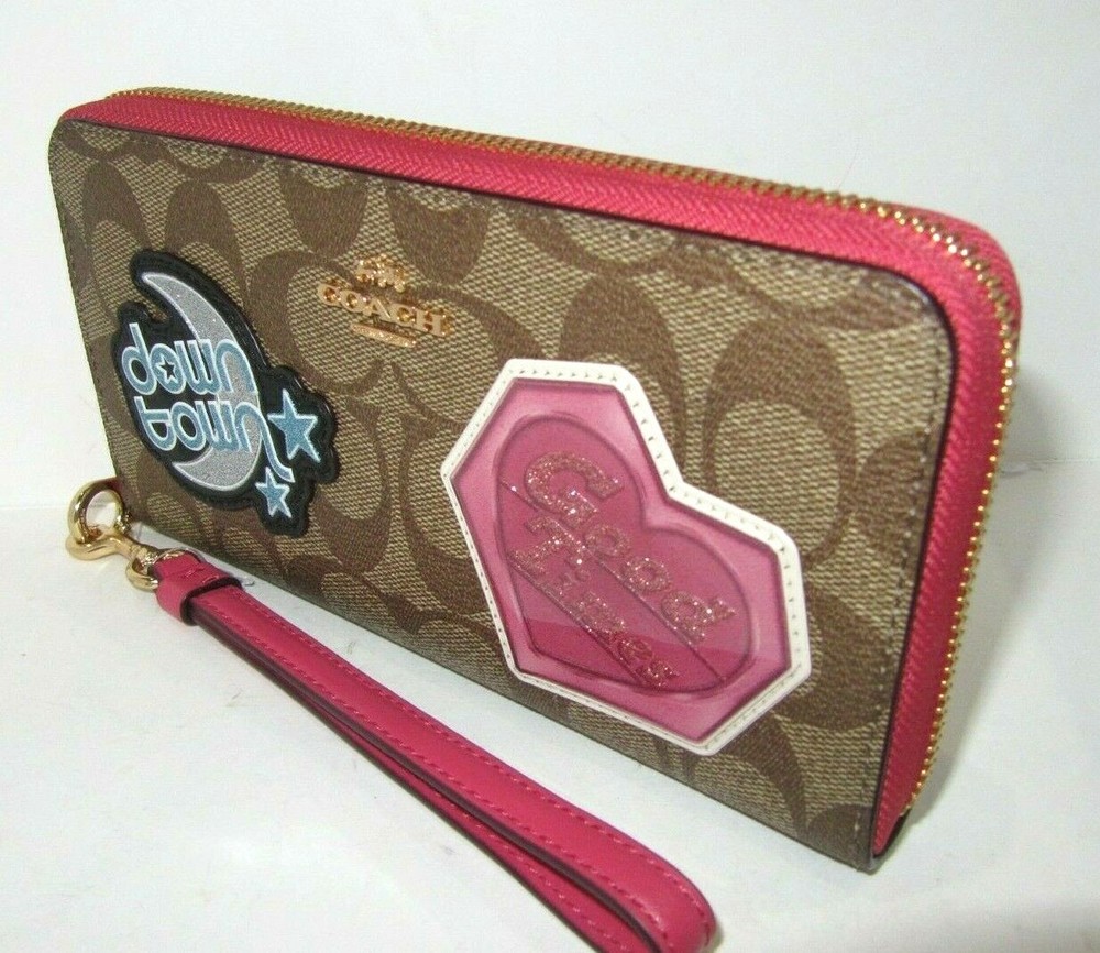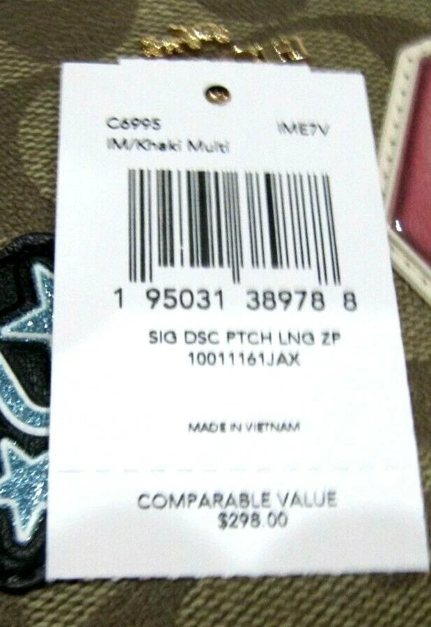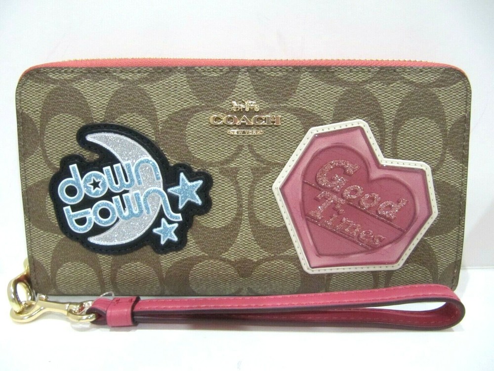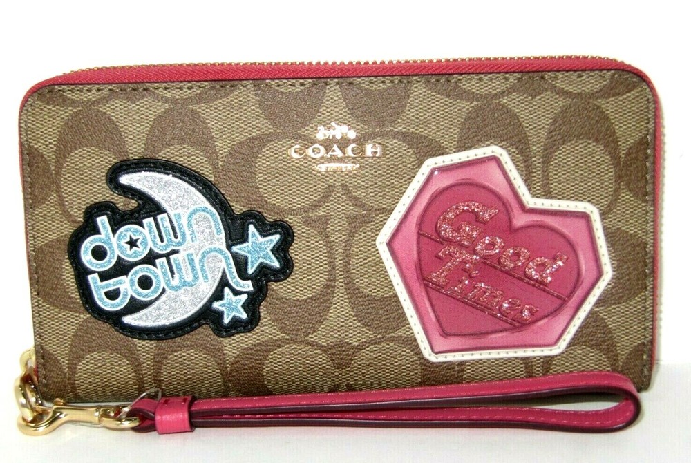 NWT Coach C6995 giftable Signature Disco Patch Long Zip Around Wristlet Wallet Color: IM/Khaki Multi Details: Signature Canvas and Smooth leather Twelve credit card slots Full-length bill compartments Inside zip coin pocket Zip-around closure Detachable wrist strap 7 1/2" (L) x 4" (H) x 1" (W) 👉Please review all photos, dimensions and descriptions thoroughly before your purchase.👈 Thank you! Please feel free to contact me if you have any question about this product before your purchase! I respond very soon. *Please note that the color in pictures might differ slightly due to lighting, flash and screen resolution.