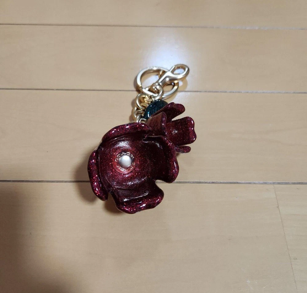 Make a statement with this large chunky flower charm. Rose red glitter resin and gold tone hardware make for a perfect color combination! Preowned item has been never been used and is in mint condition. Overall length: 15 cm Economy shipping: Shipped by registered airmail with tracking. Delivered by postal service.