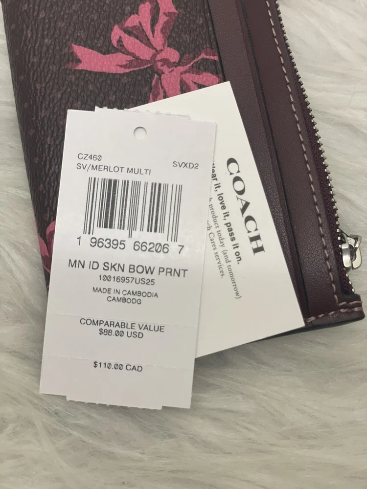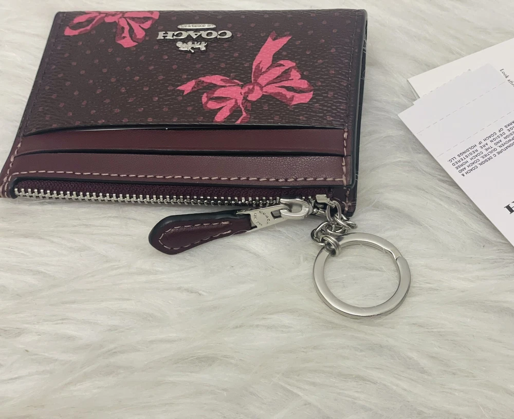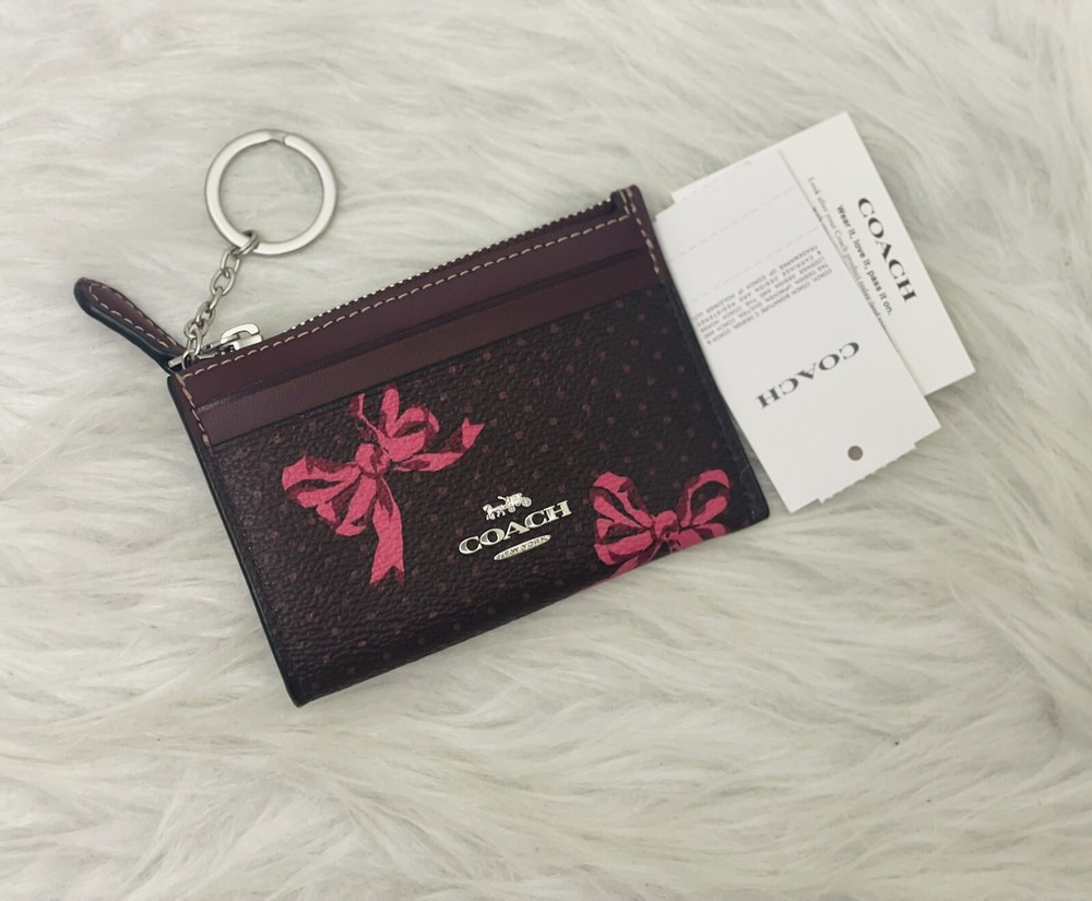 Coach Mini Skinny Id Case With Bow Print Brand new with tags 100% Authentic Style Number CZ460 Measurements Length: 4.25" Height: 3.0" Width: 0.5" Materials Printed coated canvas Fabric lining Features Two credit card slots Zip-top closure Attached split key ring Additional Details ID window Only sale Mini Skinny Id Case Available for Jamie crossbody bag Price is firm