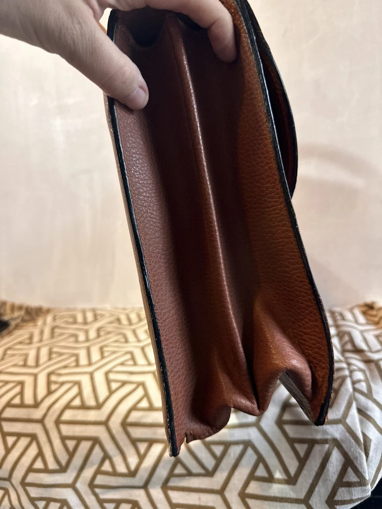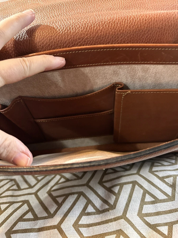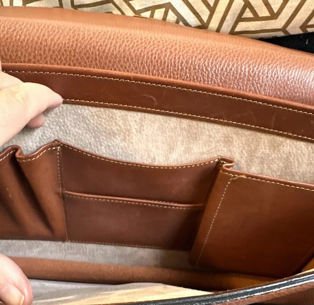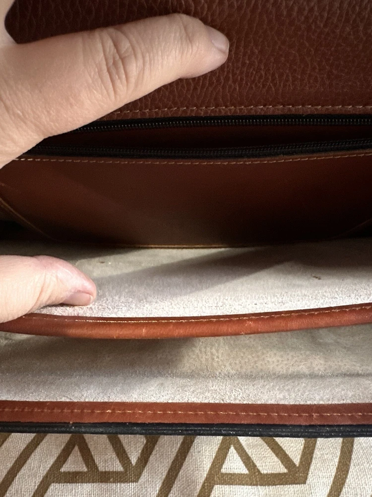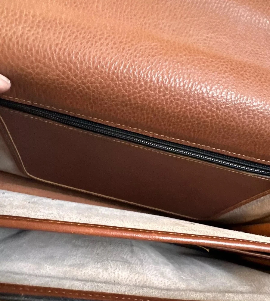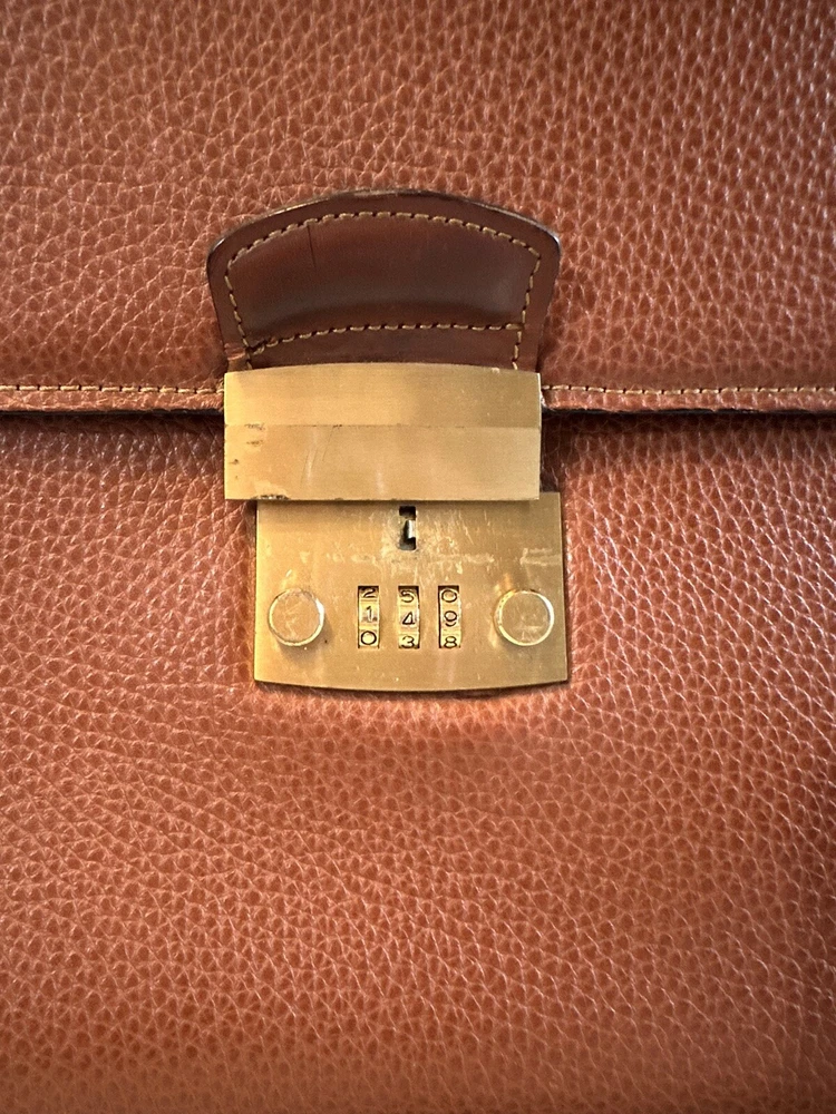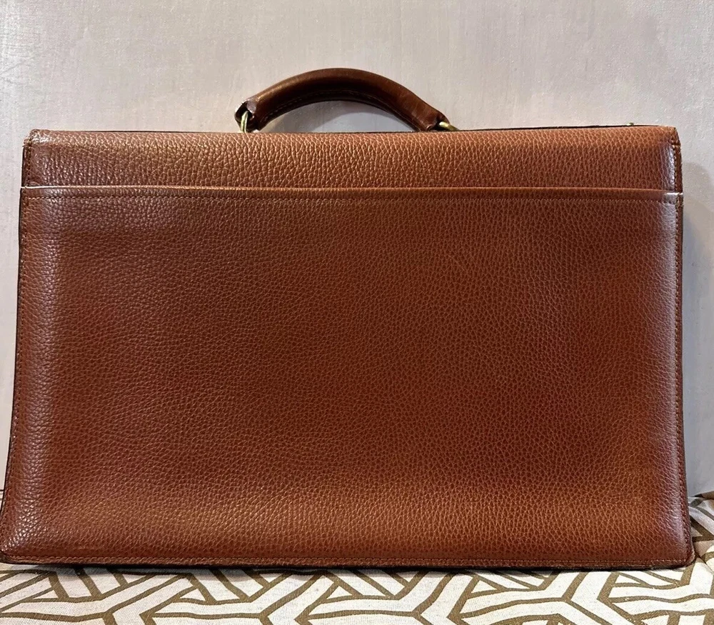 No shoulder strap see photos This vintage Coach Pebbled Brown Leather Diplomat Briefcase is a stunning addition to any collection. Crafted from high-quality leather, this bag is both durable and stylish. The flap over design with an accordion comb lock adds a unique touch that is sure to impress. With its classic brown color and 1990s design, this bag is perfect for any fashion-conscious individual. Made in the United States, this Coach bag is a true representation of quality and style. Whether you're using it to carry your everyday essentials or as a statement piece, this bag is sure to turn heads.