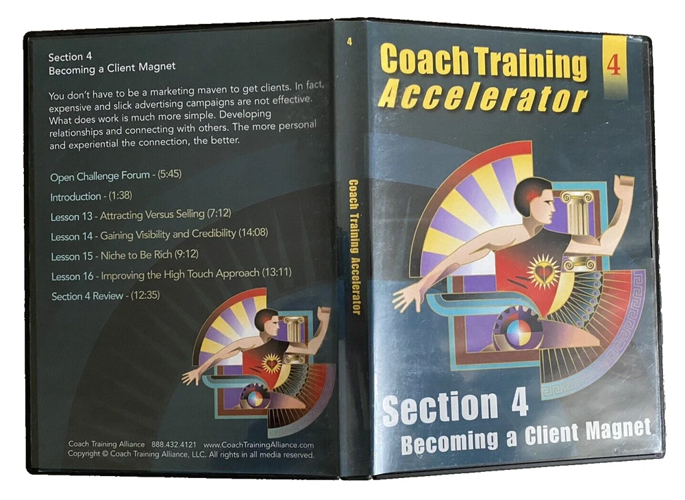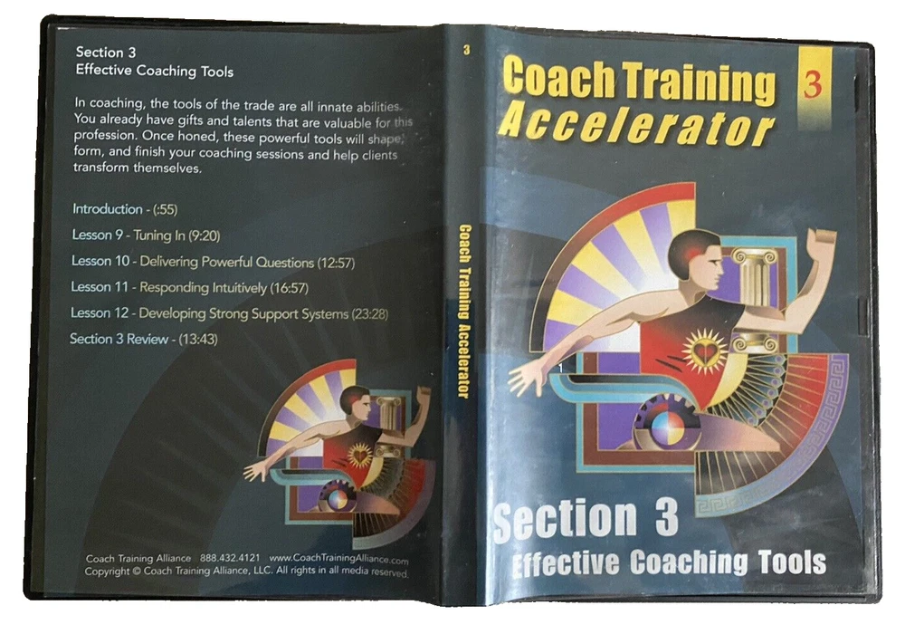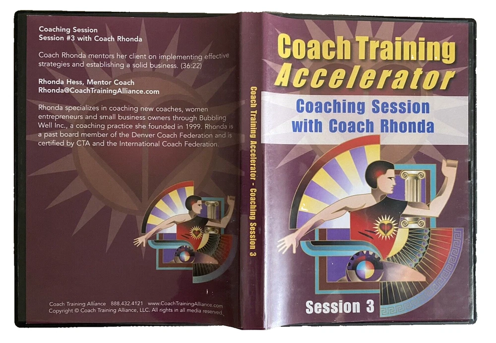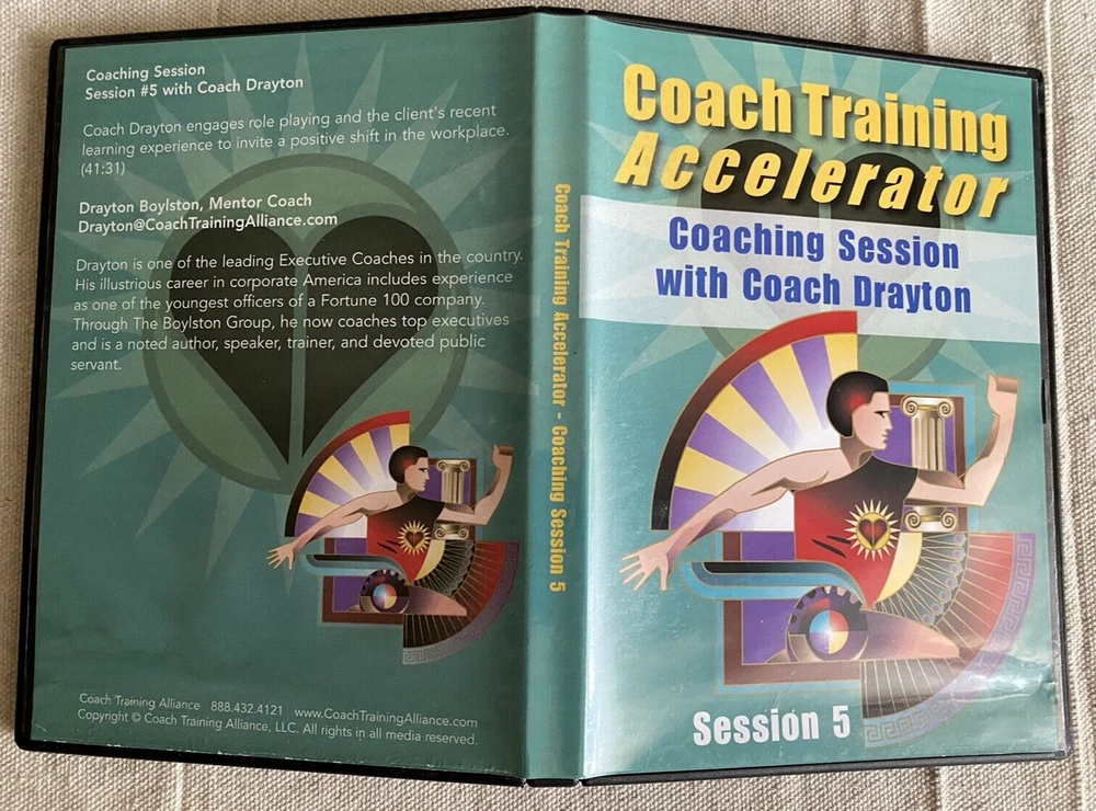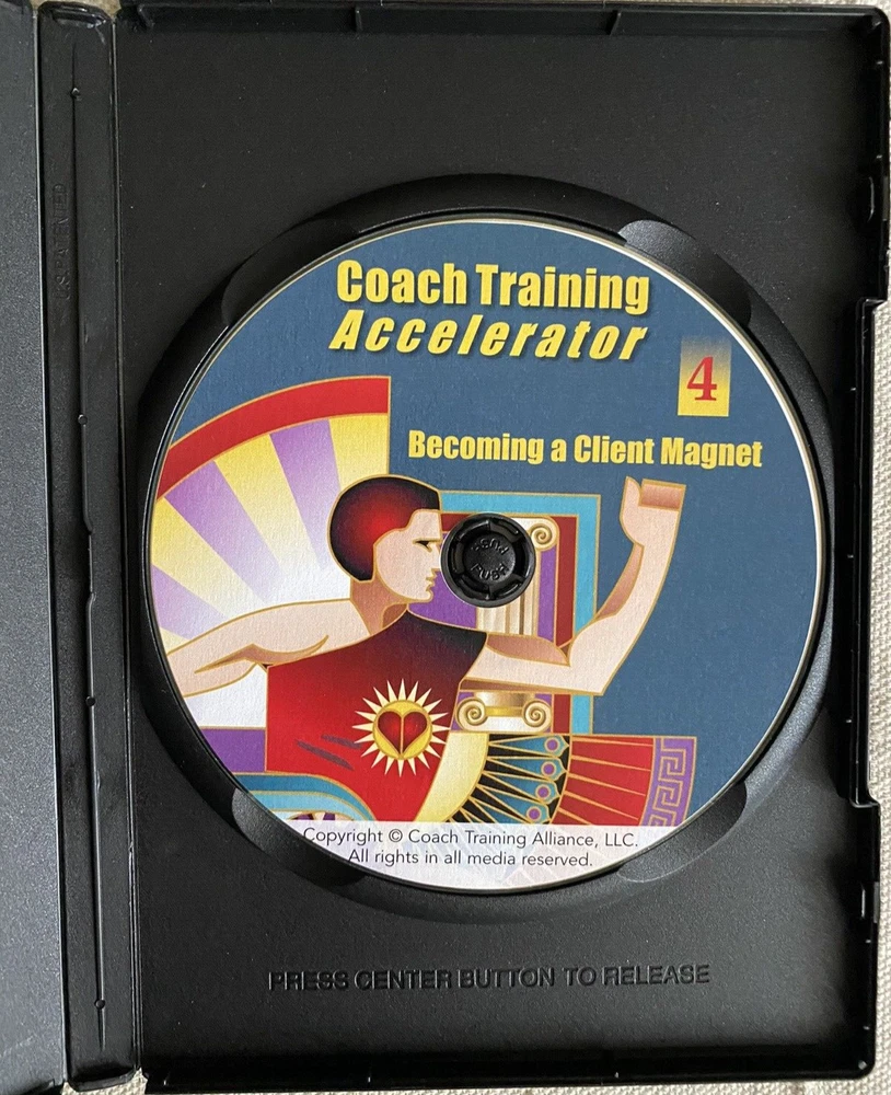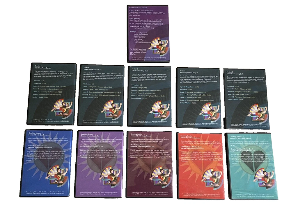 Complete Life Coach Training! Coach Training Accelerator -11 Training DVDs +Training Course & Resource Library by Coach Training Alliance Excellent pre-owned condition. Complete 11 CD-Rom/DVD Set includes the following: -Coach Training Accelerator Quick Start -Coach Training Accelerator -Section 1 Coaching from Center -Coach Training Accelerator -Section 2 Impeccable Business Sense -Coach Training Accelerator -Section 3 Effective Coaching Tools -Coach Training Accelerator -Section 4 Becoming A Client Magnet -Coach Training Accelerator -Section 5 Masterful Coaching Skills -Session 1 Coaching Session with Coach Joanne -Session 2 Coaching Session with Coach Dave -Session 3 Coaching Session with Coach Rhonda -Session 4 Coaching Session with Coach Laurie -Session 5 Coaching Session with Coach Drayton Questions? Please ask. Ships next business day.