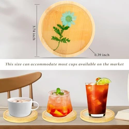 30 Days Return Policy Fast Delivery Trusted seller Coasters for Drinks – Unique Resin Coasters Set of 4 with Dried Flowers for Stylish Home Decor Decorative Wooden Cup Tray, Turquoise Flower Design Product Description Elegant Design for Home Decor: These handcrafted resin coasters with dried flowers offer a stylish and functional solution for your coffee table decor. Featuring delicate dried flowers encased in high-quality resin, they add a touch of natural beauty while protecting your surfaces from spills. Perfect for your living room or dining table, they are a beautiful choice for coasters set or a unique coaster set for special occasions Perfect for Drinks and More: These versatile coasters for drinks are designed to be highly absorbent, making them perfect for all types of beverages. Whether you are using them for coffee, tea, or cocktails, these drink coasters will protect your furniture. Their durability and elegant design make them a great choice for absorbent coasters, ensuring no moisture is left behind on your table Beautiful Resin Accessories: Each set is a collection of unique resin accessories, offering a natural, artistic touch with dried flowers for resin. The coasters come in various styles, such as coasters set 4 coastal or coasters set pressed flowers, to suit different tastes. Whether you prefer the classic beauty of stone coasters or the elegance of marble ocean coasters, these coasters are an exceptional choice for any decor style Functional and Decorative: These coasters are not just functional, but also highly decorative. Use them as part of your farmhouse coasters collection or to enhance your table coasters arrangement. With designs like blue gray stone coasters or geode coasters with holder, they provide a charming aesthetic for coffee table decor while keeping your furniture safe. Their versatility allows them to complement various decor themes, including coasters set 4 A Thoughtful Gift Idea: These pressed flowers resin coasters make for a thoughtful gift, perfect for housewarmings, birthdays, or special occasions. Their unique design and practical use as coasters with holder or a coaster set make them a popular choice for friends and family. Ideal for any home, from modern apartments to rustic farmhouse settings, they blend perfectly with ceramic coasters, sandstone coasters, and other decor items to create a cohesive and stylish look Shipping Returns Payment Shipping Shipping is FREE to all addresses other than APO/PO boxes in the lower 48 states. All our stock ships from US-based warehouses. Shipped via USPS or UPS (depending on location and package weight) Unless stated otherwise, all orders will ship within 24-72 hours of your payment being processed. Check our feedback to see the great reviews of FAST shipping we offer. Returns As our valued customer, we will do our best to make sure the product you receive arrives to you on time and as expected. If you are not satisfied with your purchase, please contact us within 30 days of receiving your order to process a return. Payment We currently accept payment via eBay managed payments only. Once payment is cleared, we will dispatch your shipment within 1-3 business days. Please refer to the "Shipping" tab for more information regarding shipping speed to your destination.
