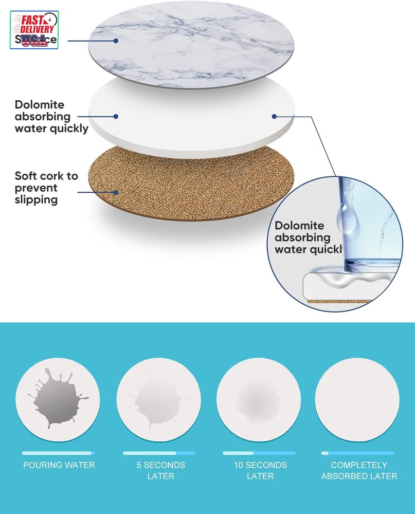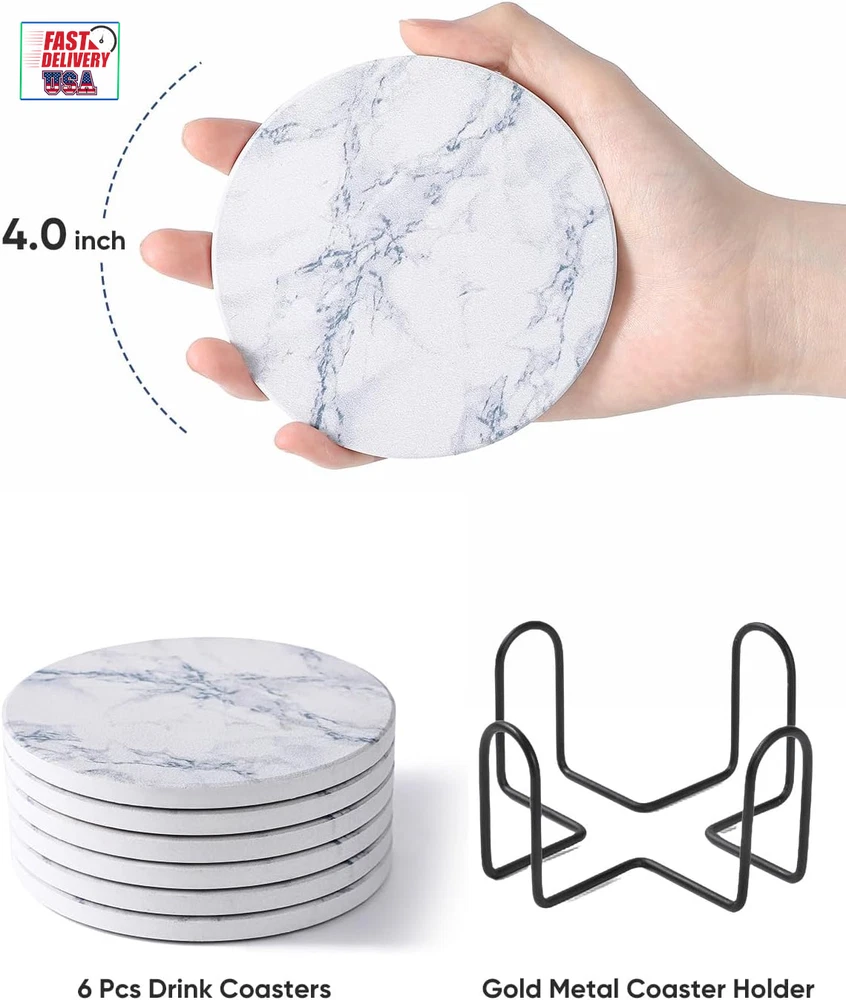 Store New Arrivals Add to Favorite View Feedback Contact Coasters for Drinks, White Marble-Style Absorbent Coasters with Holder, Housewarming Gifts for Home Decor, Suitable for Kinds of Cups, 4 Inches, Set of 6 Description Number of Items 6 Color Ivory Marble Material Porcelain Is Dishwasher Safe No Item Weight 1.5 pounds Shape Round Product Dimensions 3"L x 3"W Product Care Instructions Water Size 6 Pack Perfect Size: Coasters set of 6 with a 4-inch diameter and 0.27-inch thickness, these drink coasters with holder fit a wide variety of cups and glasses, providing ample space to catch drips and condensation, making it versatile for normal drinkware Strong Absorption: Coasters for drinks are made to absorb moisture effectively, this absorbent coasters keep surfaces dry and clean. Perfect for hot and cold drinks, it stands out with superior absorption, leaving no water rings behind Non-Slip: Stone coasters equipped with a cork backing to prevent slipping, it stays securely in place on any table. Unlike silicone, fabric, or other materials, the ceramic surface holds cups steady, ensuring stability for different types of drinks Surface Protection: Thirstystone coasters protect wooden and marble tables from scratches and moisture damage. Marble coasters with an absorbent ceramic top and cork backing prevent liquid residue from damaging your furniture, preserving your surfaces Stylish & Giftable: Ceramic coasters with a natural stone look, this modern coaster complement coffee tables and marble surfaces beautifully. Many customers consider sandstone coasters as an ideal white elephant gifts for adult useful, often recommended by friends Product Description Drinks start with LIFVER coasters Protect your table surface! Coasters are must-have for all houses, as they are not only home decor, but also protector for your new furnitures. LIFVER coasters will help capture moisture from ice cold drinks and protect surfaces from hot coffee cups. And the 4 inch drink coasters set is big enough for beer/whisky/glass cups and mugs. Whether you are looking for housewarming present or a unique accessory to add to your cocktail bar-ware set, this complete coaster set will not disappoint you. The video showcases the product in use. The video guides you through product setup. The video compares multiple products. The video shows the product being unpacked. LIFVER Sandstone Absorbent Drinks Coasters with Holder Strong Water Absorption - Special absorbent ceramic, water absorption is completed in about 5-10 seconds Cork Bottom - The coaster is equipped with a cork backing to prevent scratches on the table Appearance Patent - professional designer design, registered appearance patent Simple and Classy Style - Suitable for all kinds of home decoration perfect size 4 inch size, suitable for all kinds of cups and beverages Cork Bottom The coaster is equipped with a cork backing to prevent scratches on the table Hand washable With dark drinks, it can be quickly rinsed and dried to reduce stains on ceramic coasters Best gift They also make an excellent gift choice. Their stylish design and multifunctional nature make them ideal Christmas gifts, Mother's Day gifts, and housewarming gifts. 1 outdoor coasters 2 coasters for dining table 3 coasters for desk 4 coasters for coffee table ABOUT US We offer the best prices around on high quality products. Our E-store includes media such as books, movies, music and games while offering electronics, toys, sporting apparel, clothing, tools, general home, garden items and more. SHIPPING We are always working hard to ensure your package arrives as soon as possible. Please understand that some factors like weather, high postal traffic, and the performance of shipping companies are outside of our control. We offer free shipping to the lower 48 states and ship within 2 business days of payment, usually sooner. We do not accept P.O. Boxes. Please provide a physical address. For shipping outside of the continental USA, we only use eBay's Global Shipping Program.The item is shipped to KY and then sent to the rest of the world. International customers are responsible for all duties and taxes. Continue to check out in order to calculate costs for shipping the item to your country. Messages regarding eBay's Global Shipping Program MUST be directed at eBay EXCLUSIVELY. RETURNS We offer a 30-Day Return Policy on items which you are not completely satisfied with. You have the option for a full-refund or an exchange of the item. No returns are available on items shipped outside of the USA. PAYMENT We accept PayPal. CONTACT US This page content is yet to come Please ad us to your favorite seller and visit again later Thank You CUSTOMER SATISFACTION We try our very best to make sure every customer is completely satisfied. If there's a problem, message us! We're happy to help. WE ACCEPT Copyright © 2021 AutoDS. | All Rights Reserved